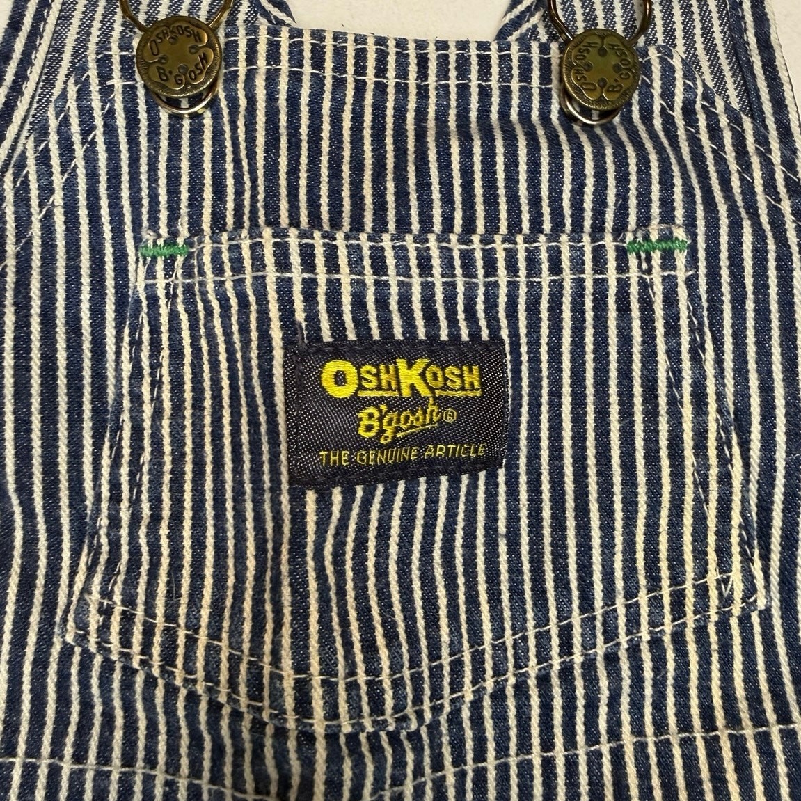 как выглядит VTG OshKosh B Gosh Overalls Kids 5T Stripe Denim Vest Back 80s 90s Classic Retro фото