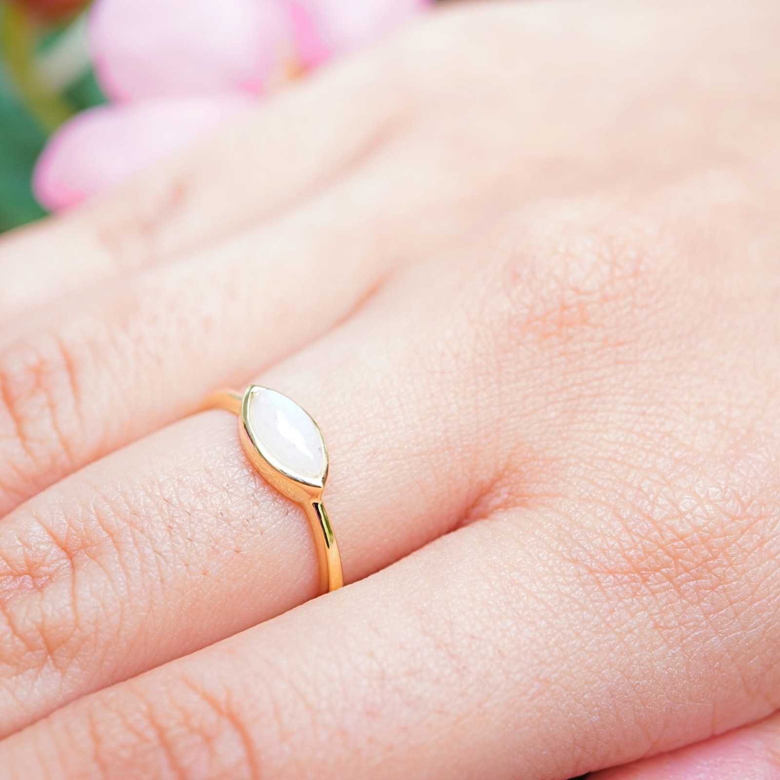 Dainty Gemstone Marquise Ring for Women 8211; 925 Sterling Silver 18K Gold Pla