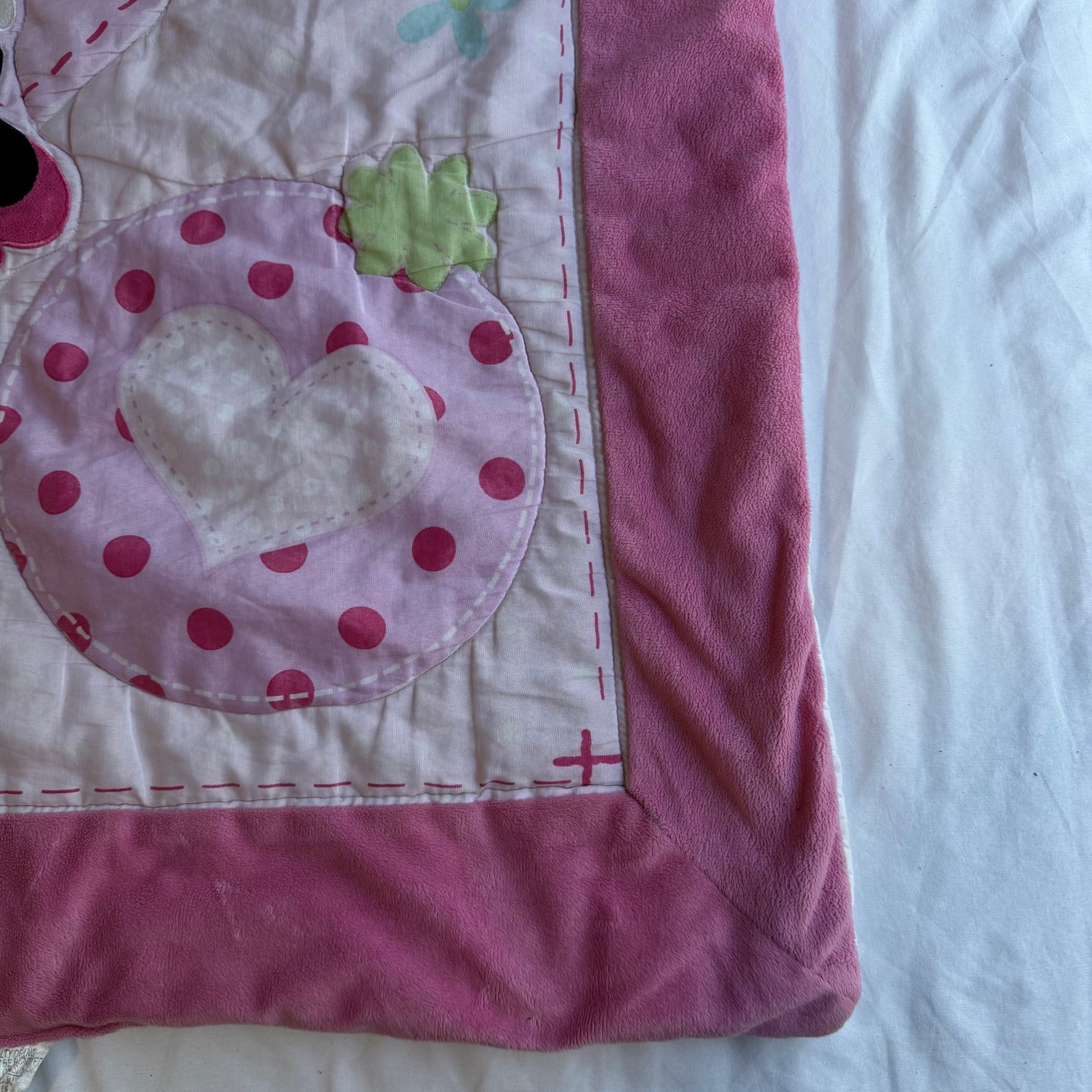 Disney Baby Minnie Mouse Plush Bow Crib Toddler Blanket Quilt Embroidered 40x30