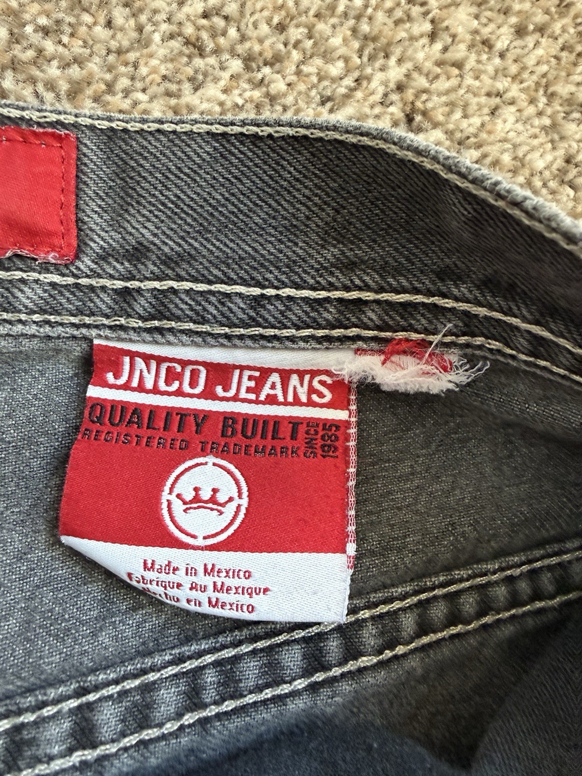 как выглядит JNCO Tribals Skull King Crown Black Faded Denim Jeans Size 33x32 фото