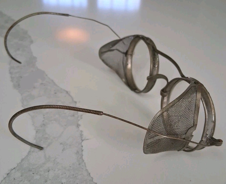 Vtg 1940s BUSCH LOMB SAFETY WELDING GOGGLES GLASSES WIRE FRAME STEAMPUNK USA A4
