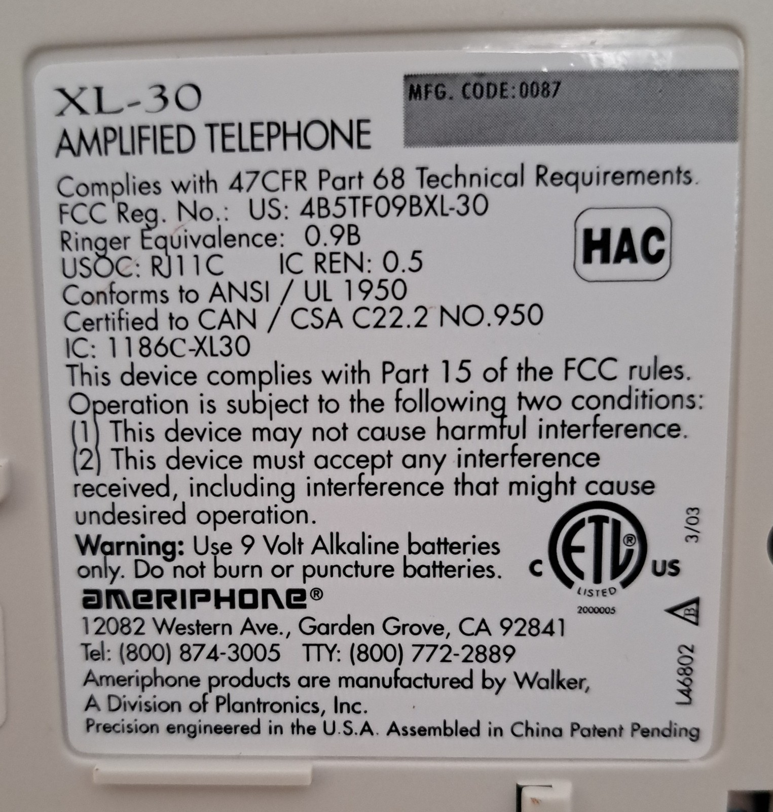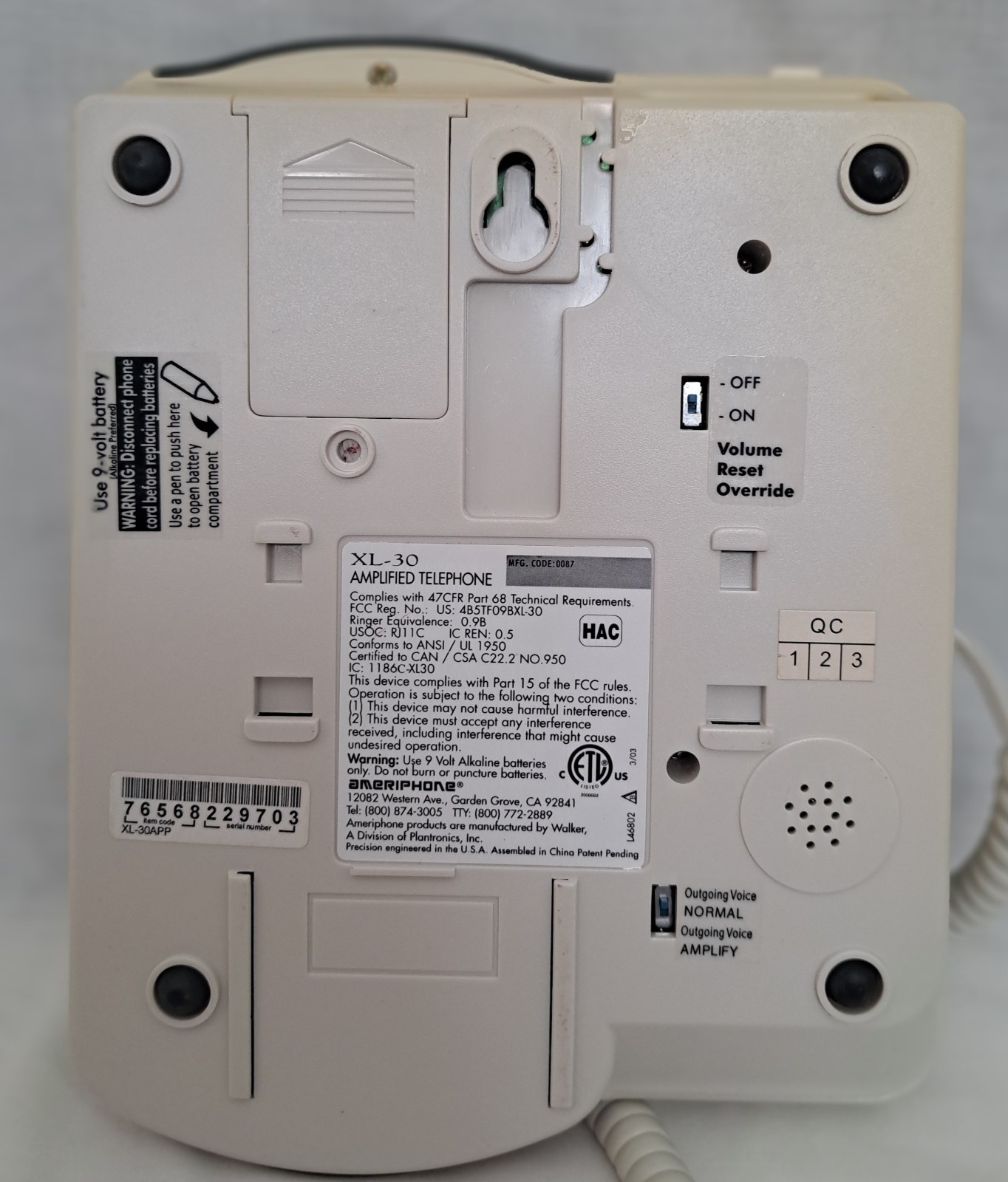 Ameriphone Extra Loud Clear XL-30 Amplified Telephone Line Powered