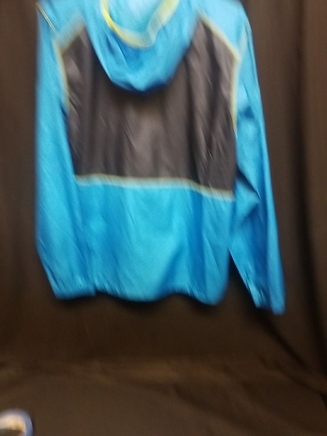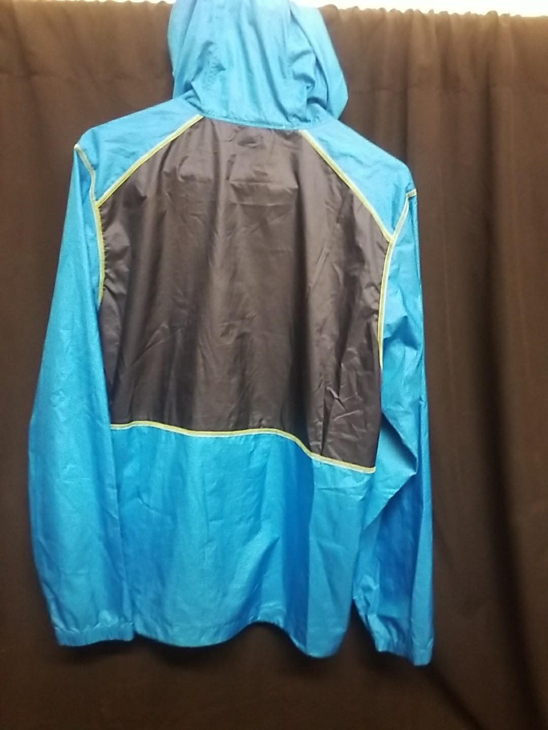 Hooded Windbreaker, Sz. Small, Columbia Blue/Black/Green, Zipper Chest Pocket