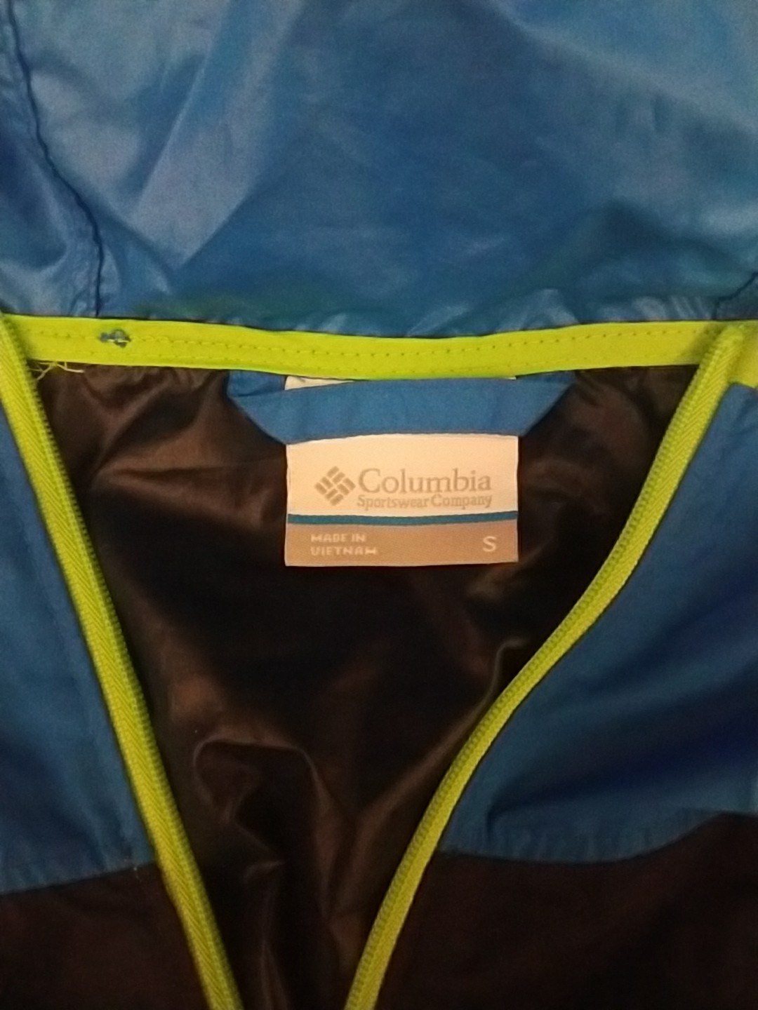 как выглядит Hooded Windbreaker, Sz. Small, "Columbia" Blue/Black/Green, Zipper Chest Pocket фото
