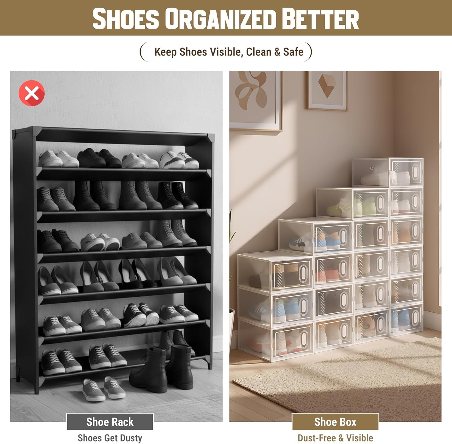 Shoe Storage Boxes 18 Pack Clear Plastic Stackable US Size 5 10