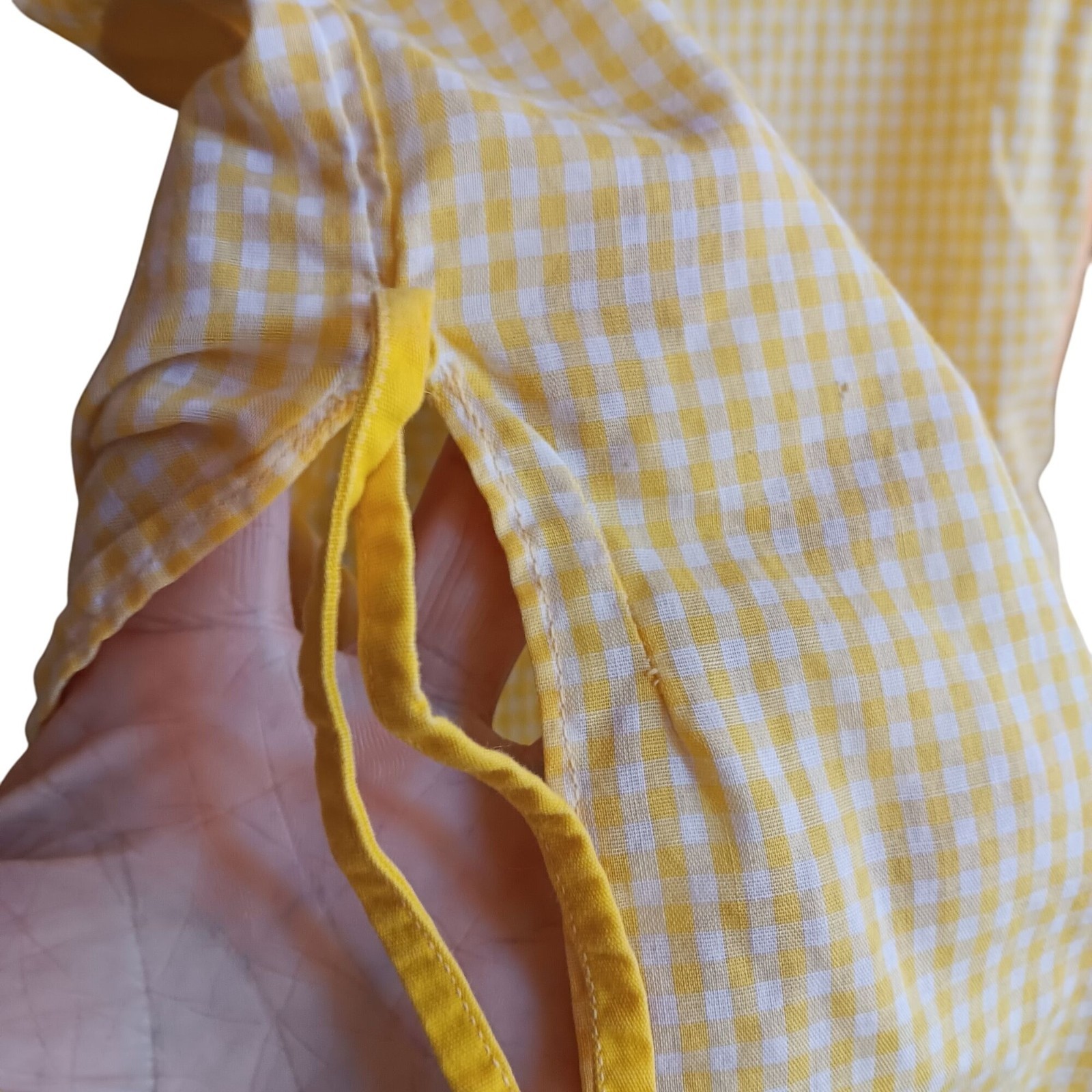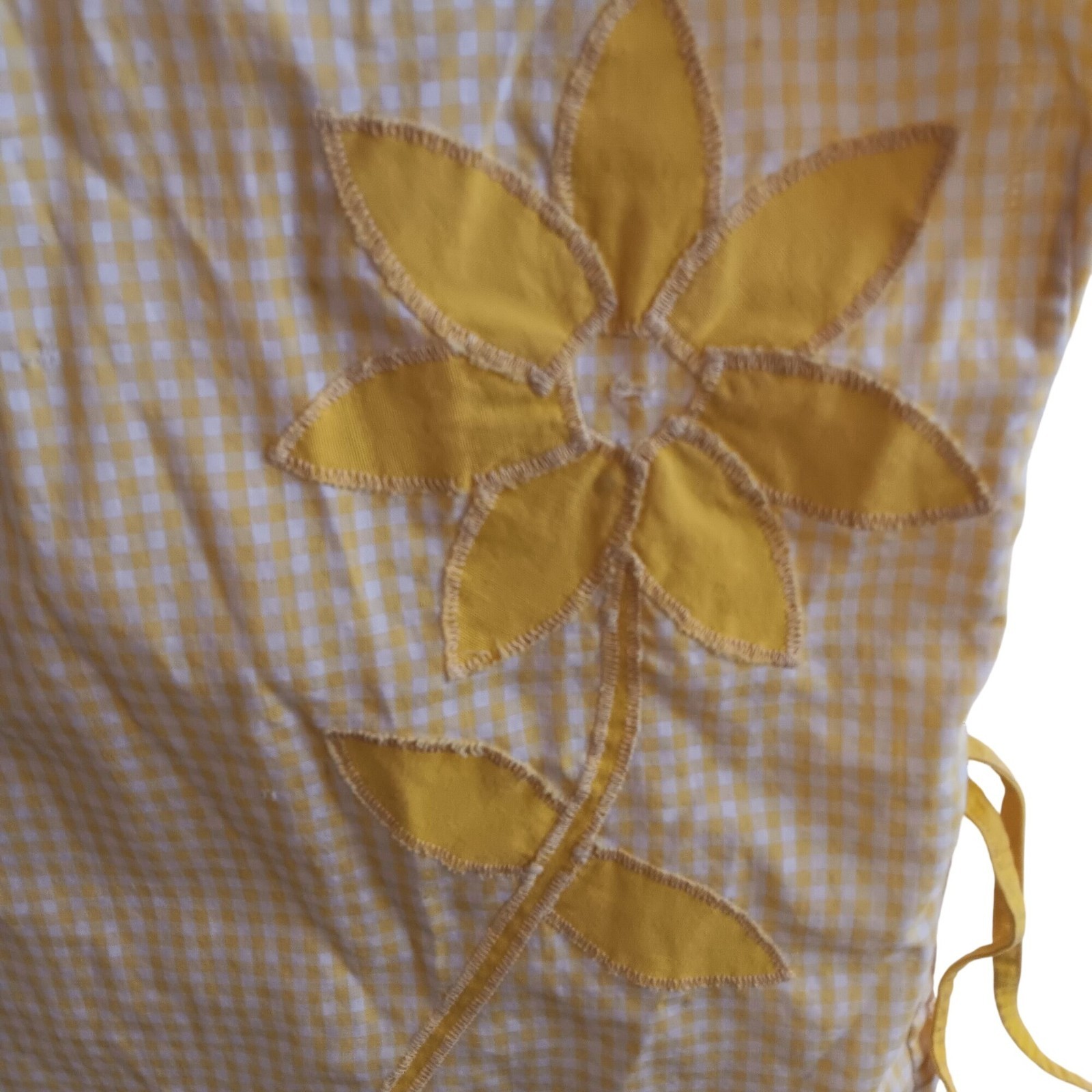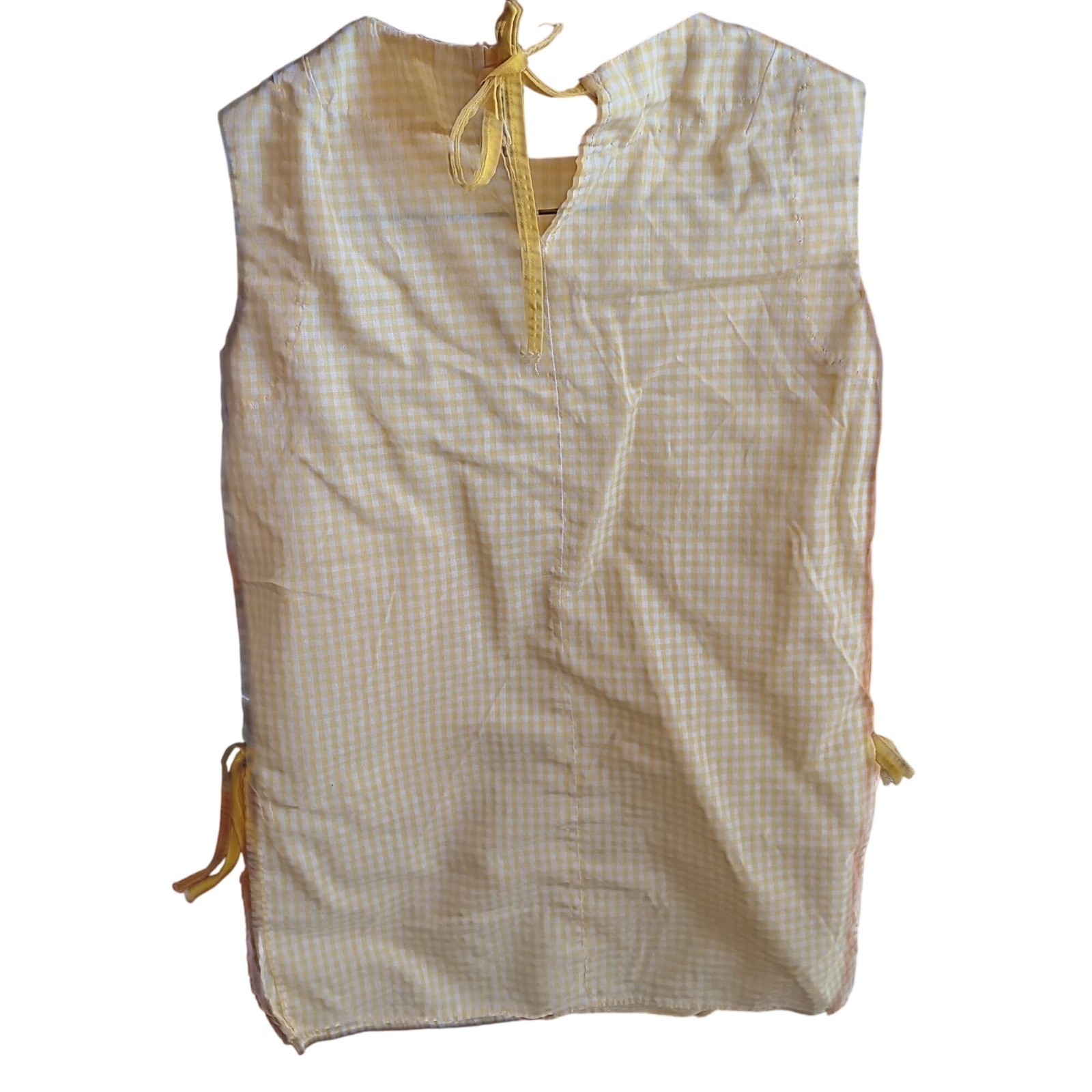 Vintage Girls 10 Frock Dress 1950's Yellow Gingham Sleeveless Sunflower Appliqu
