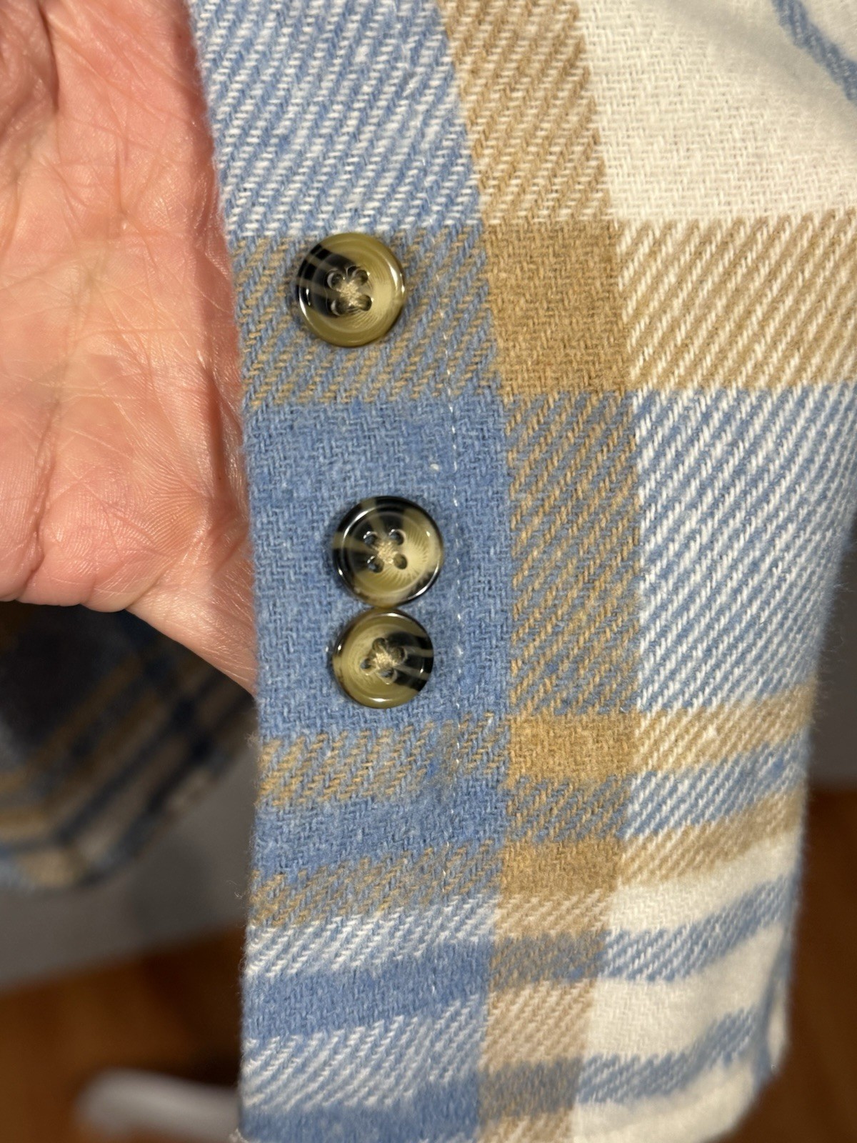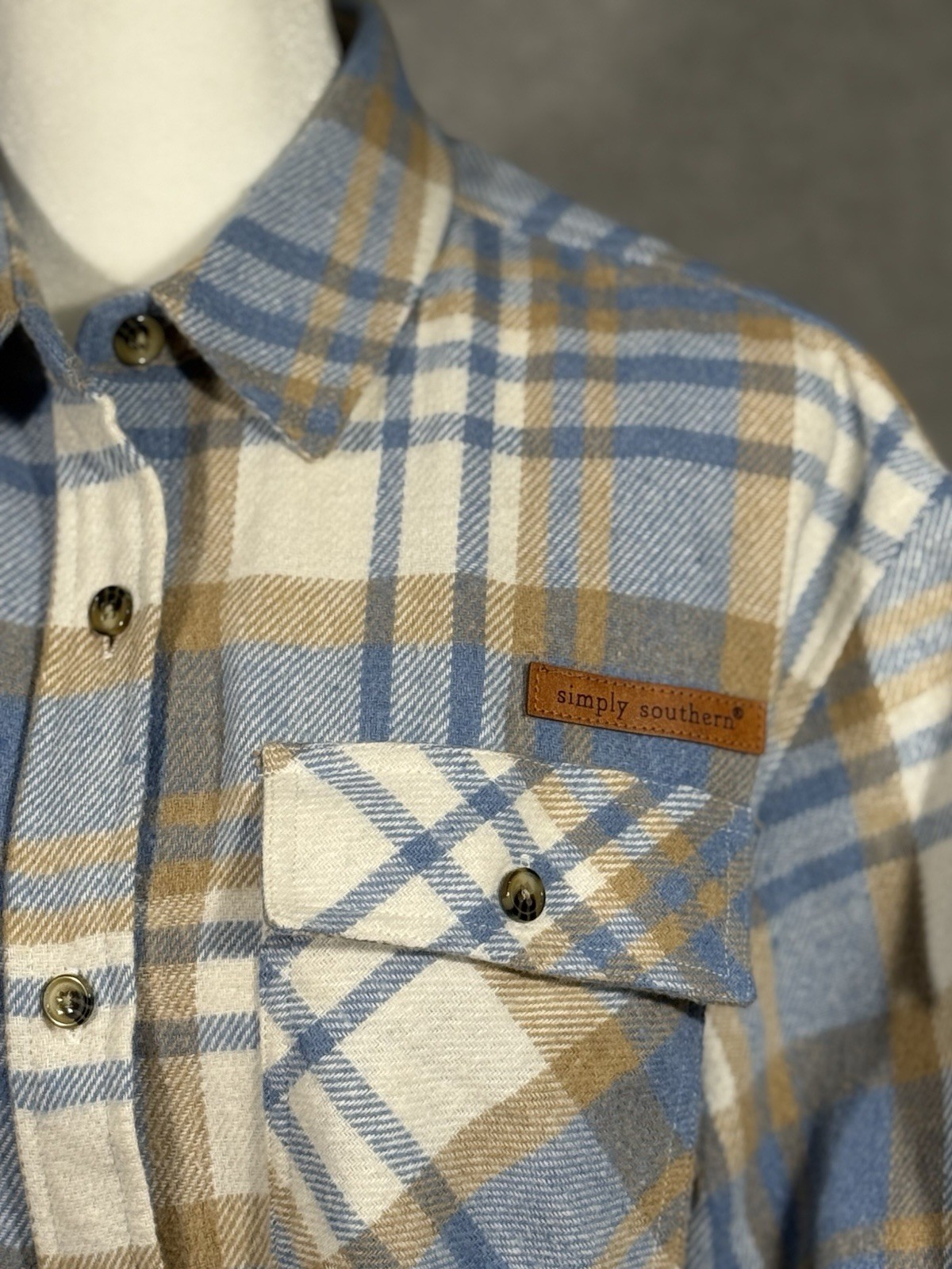 как выглядит Simply Southern Fleece Shirt Jacket Women s Blue Beige White Plaid-Size Medium фото