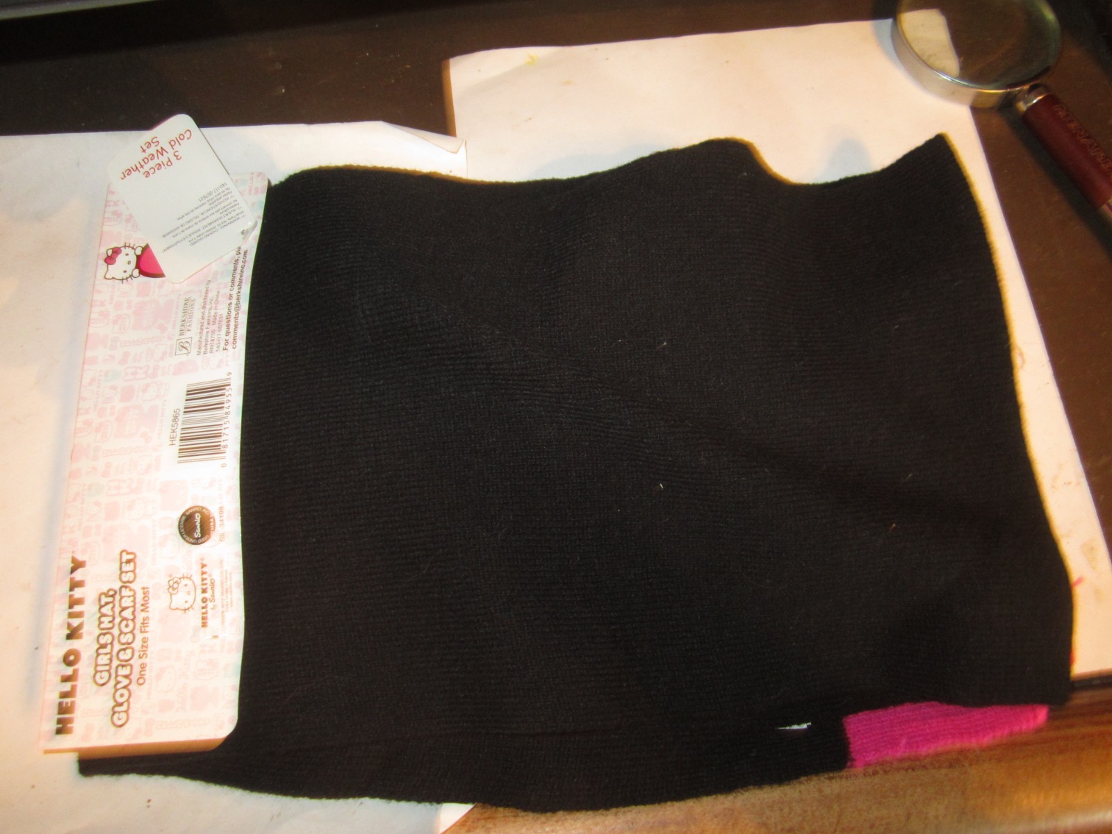 как выглядит NWT Girls Hello Kitty BLACK 3 PIECE HAT GLOVES AND SCARF SET ONE SIZE FITS MOST фото