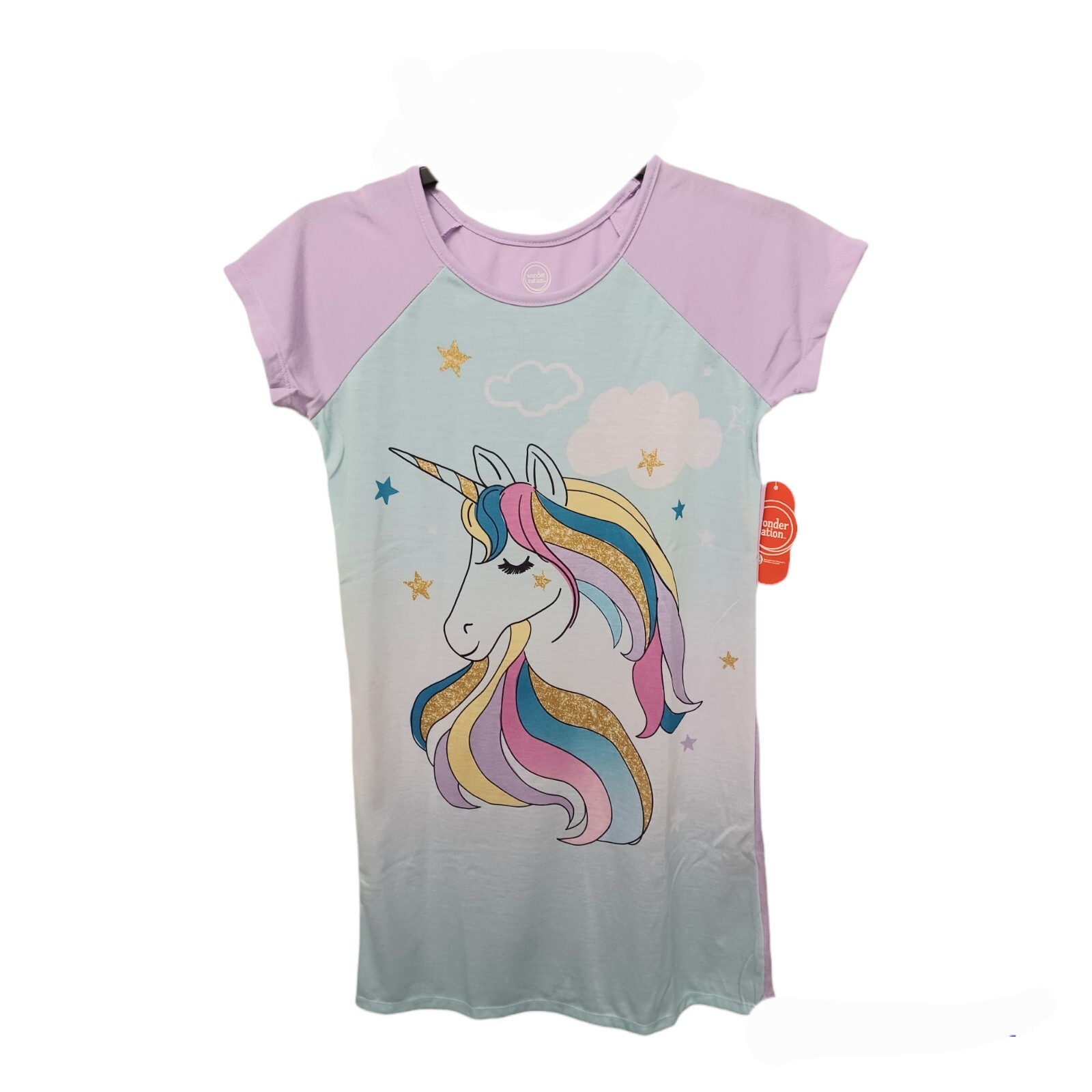 как выглядит 2x Wonder Nation Girls Nightgown Pajamas-10/12-Unicorn-Clouds-Short Sleeves фото