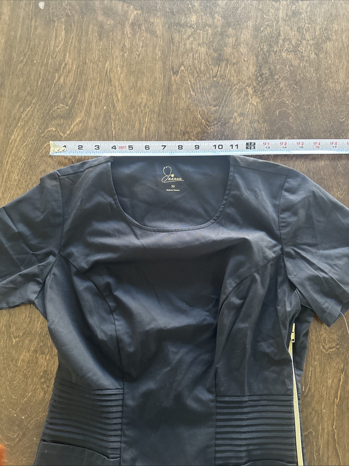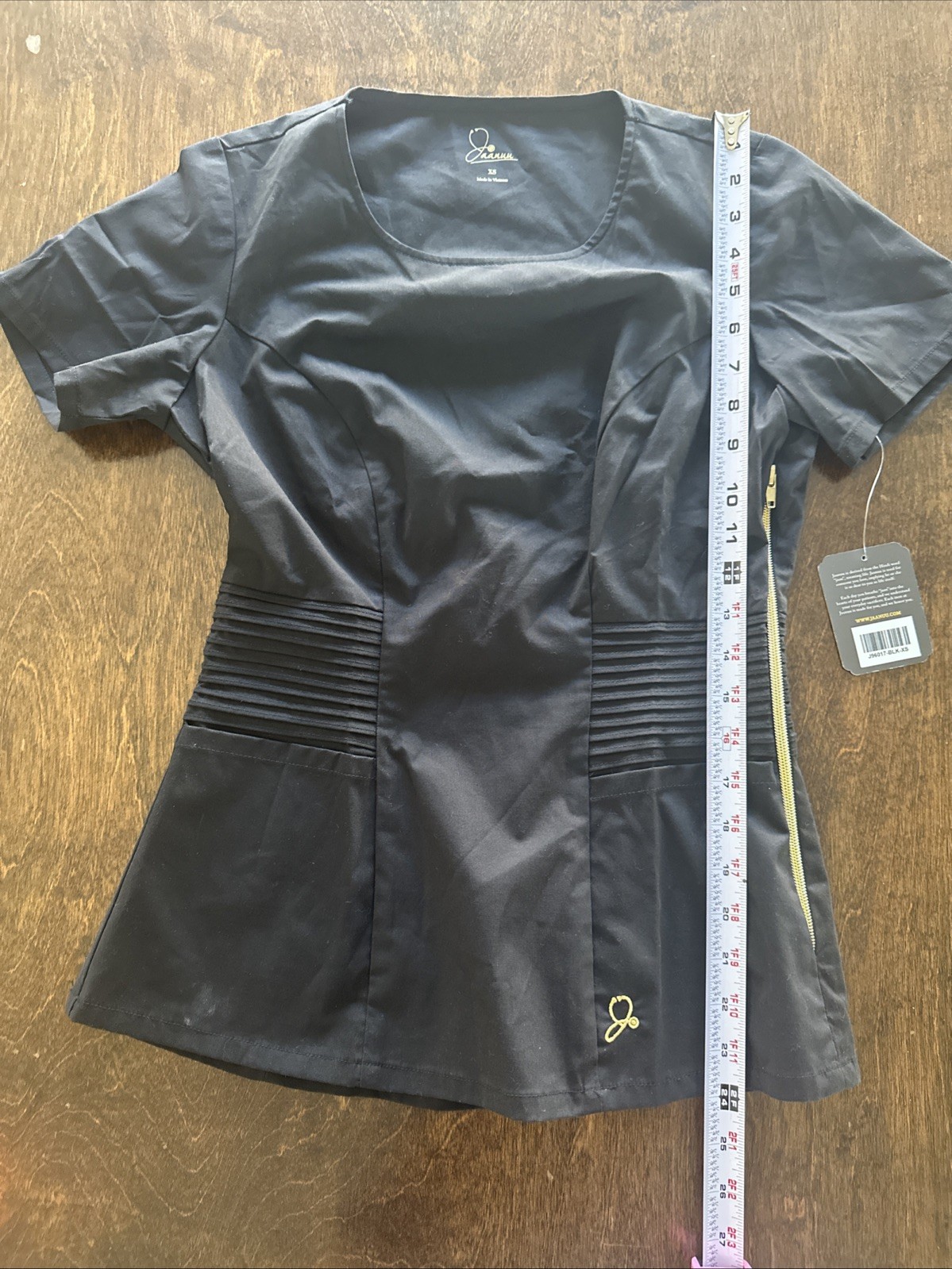 Jaanuu Women s Scrub Top Scoop Neck Side Zipper Pintuck Black Size XS NWT