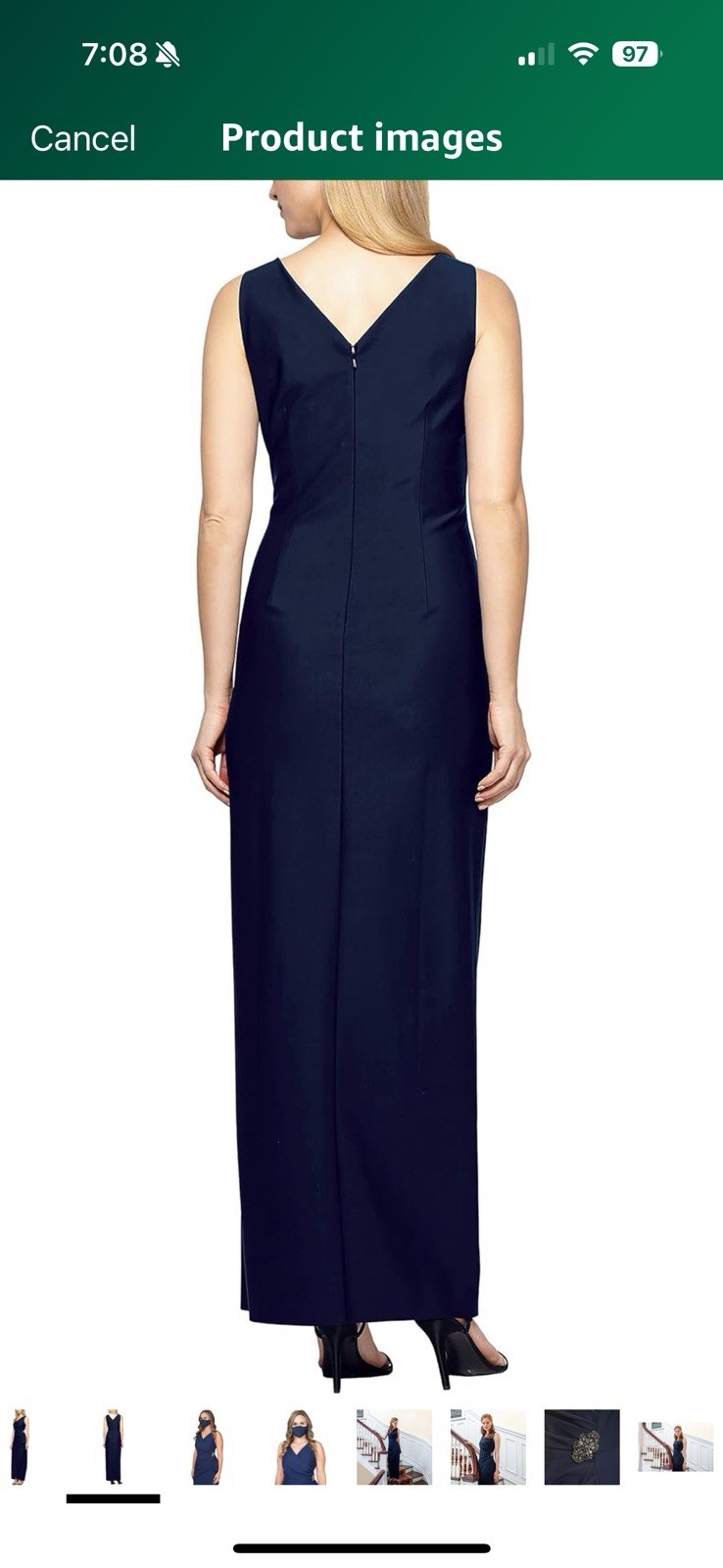 как выглядит Alex Evenings Embellished Side Drape Column Formal Dress Sz 8 279 navy 1266 фото