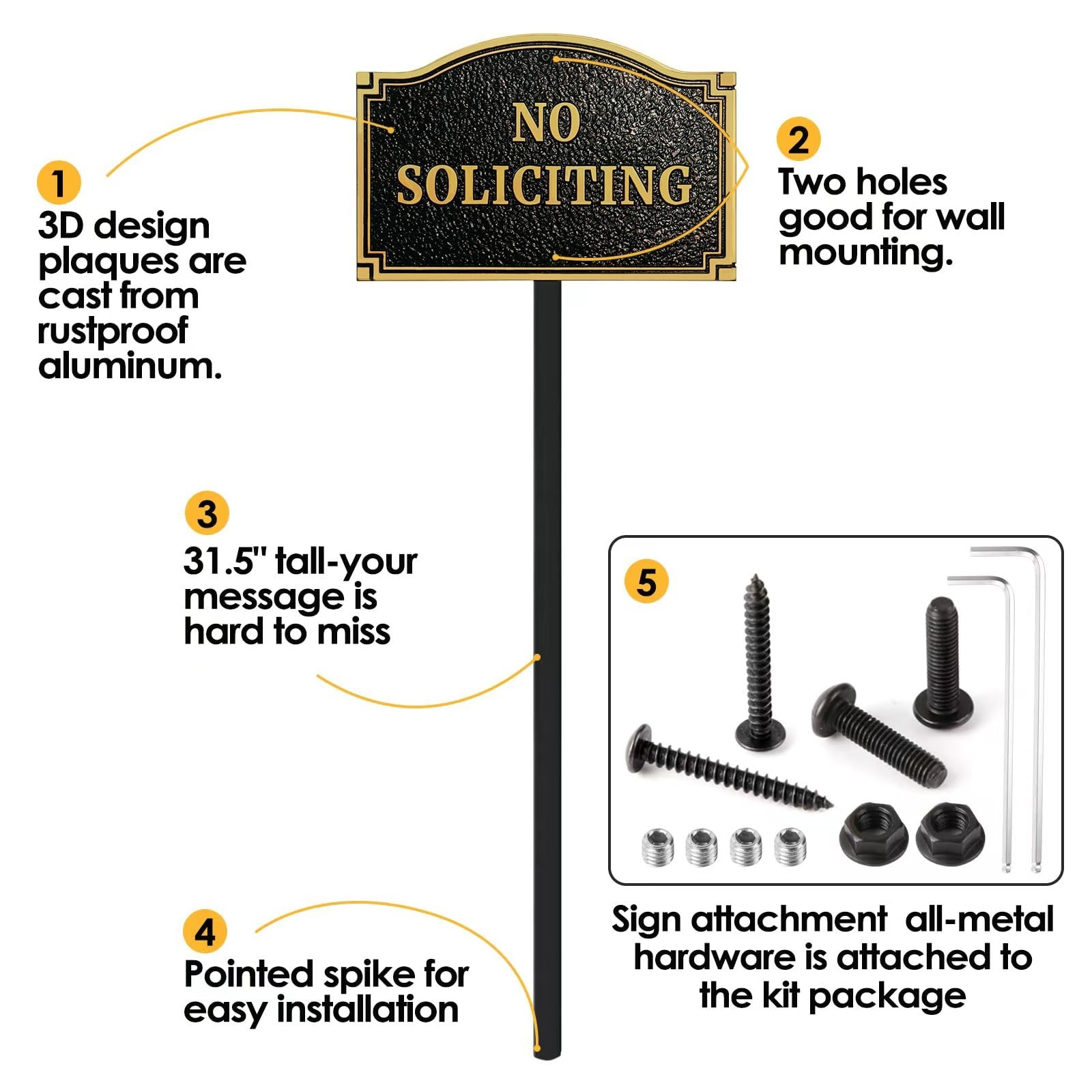 • Beware of Dog with Stakes Statement Plaque, Solid Metal Cast Yard Sign, Thick...