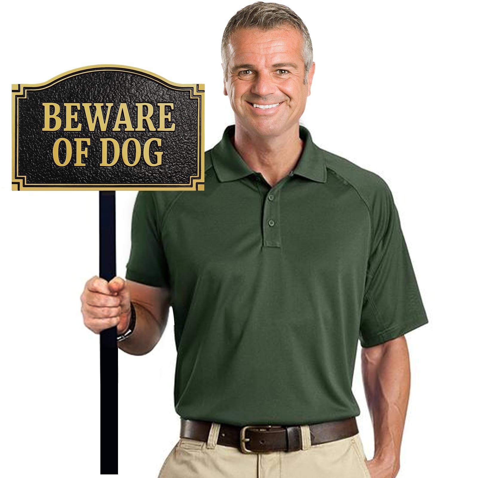 Beware of Dog with Stakes Statement Plaque, Solid Metal Cast Yard Sign, Thick...