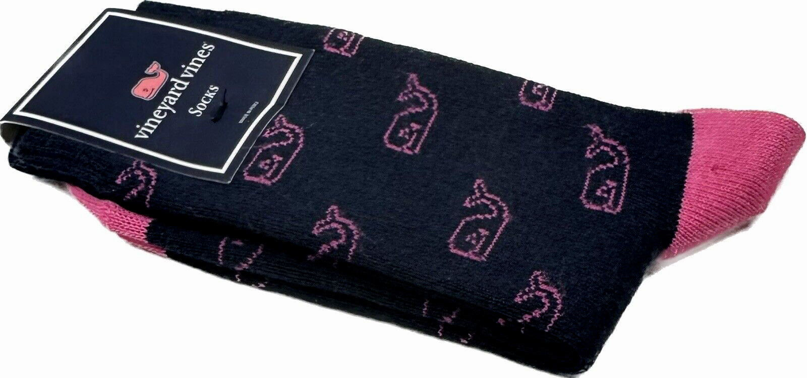 Vineyard Vines Girls Navy Blue Pink Crew Pima Cotton Whale Logo Casual Socks OS