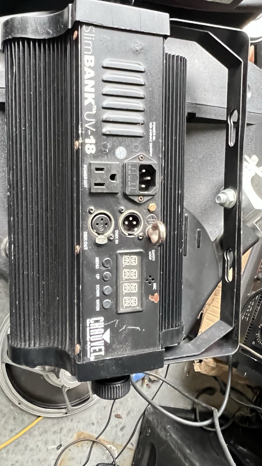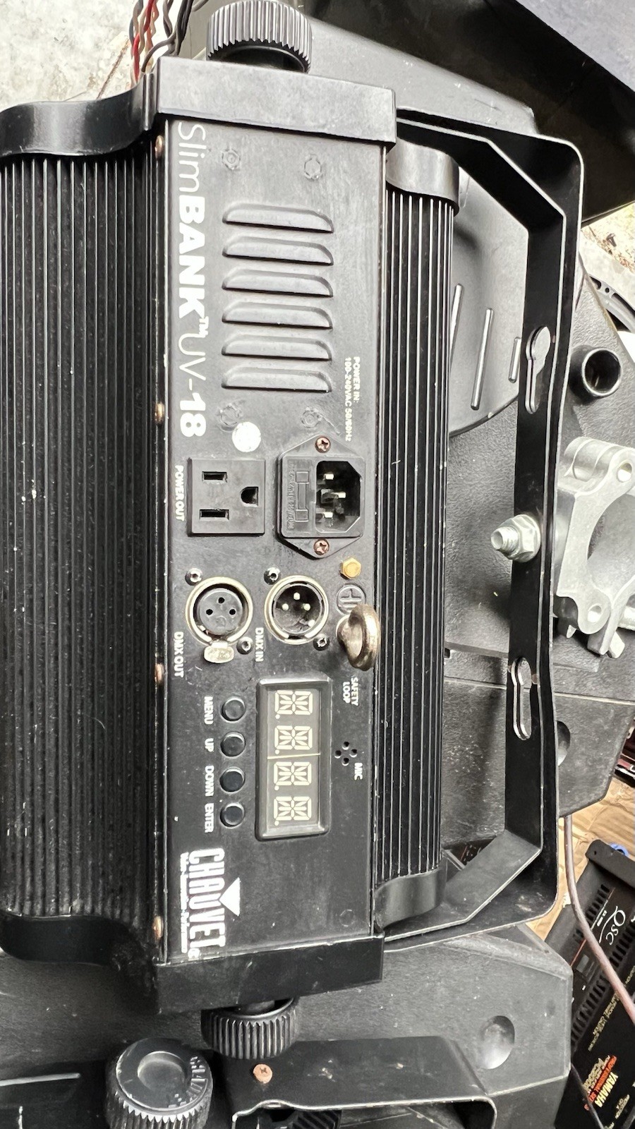 как выглядит Pair Chauvet Slim Bank UV-18 High Powered LED Black Lights W/Truss Mounts фото