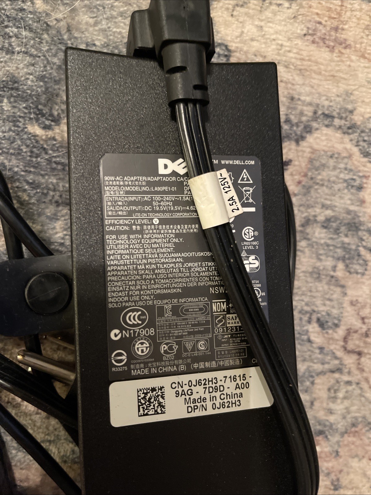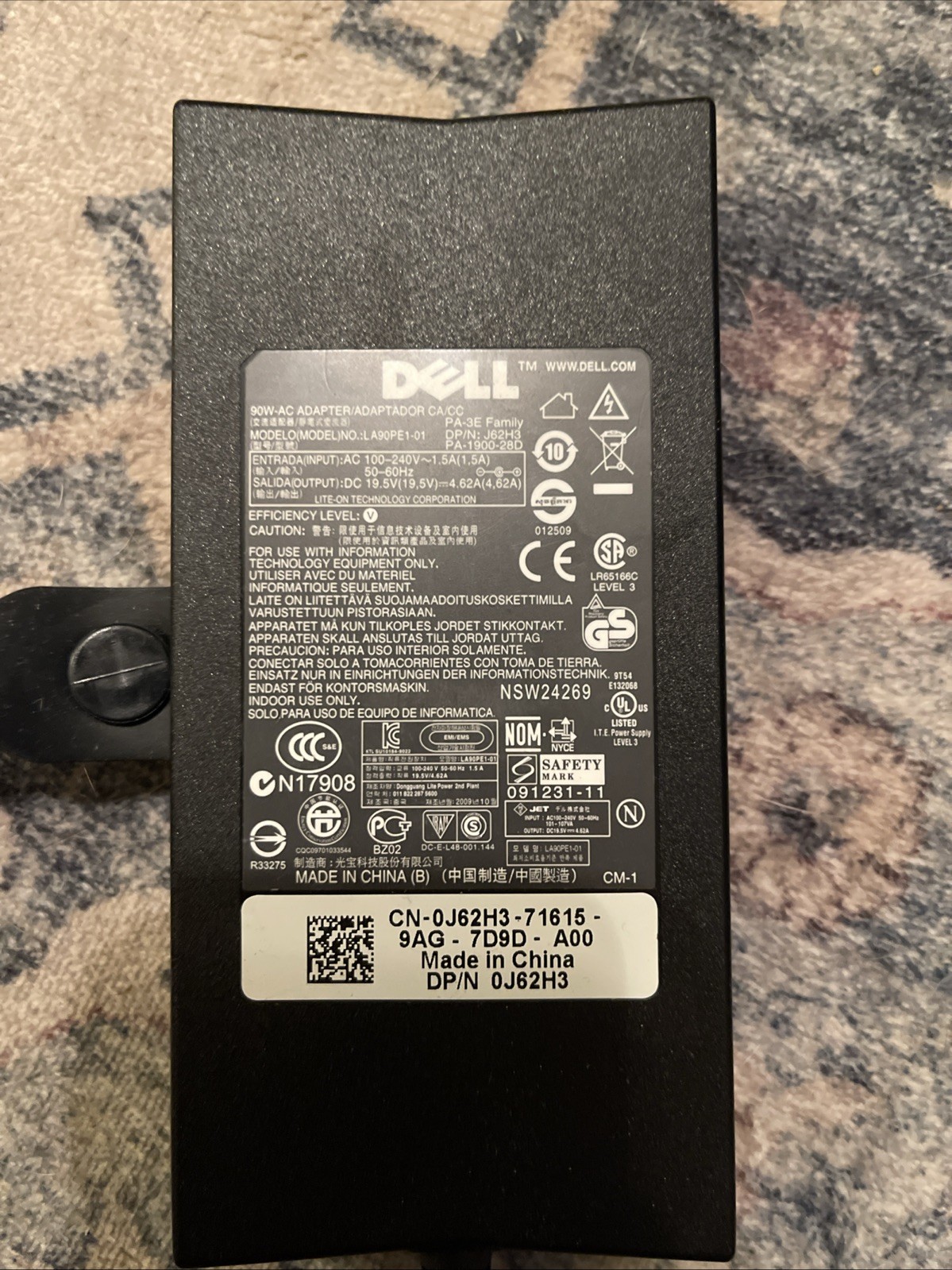 как выглядит Genuine DELL 90W LA90PE1-01 AC Adapter 19.5V 4.62A Power Charger with Power Cord фото