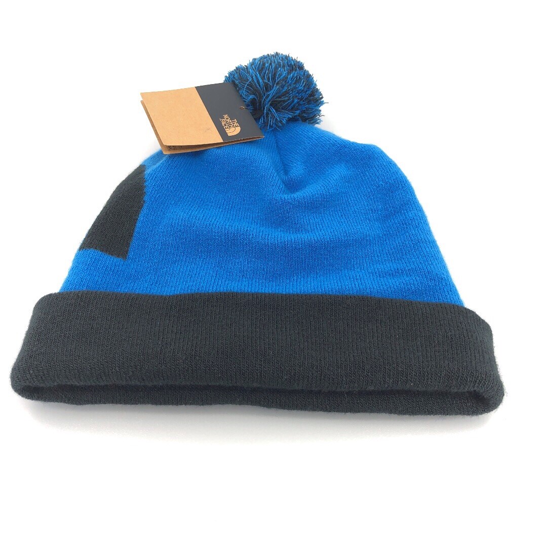 The North Face Youth Ski Tuke Hero Blue Black Pom Hat OS New