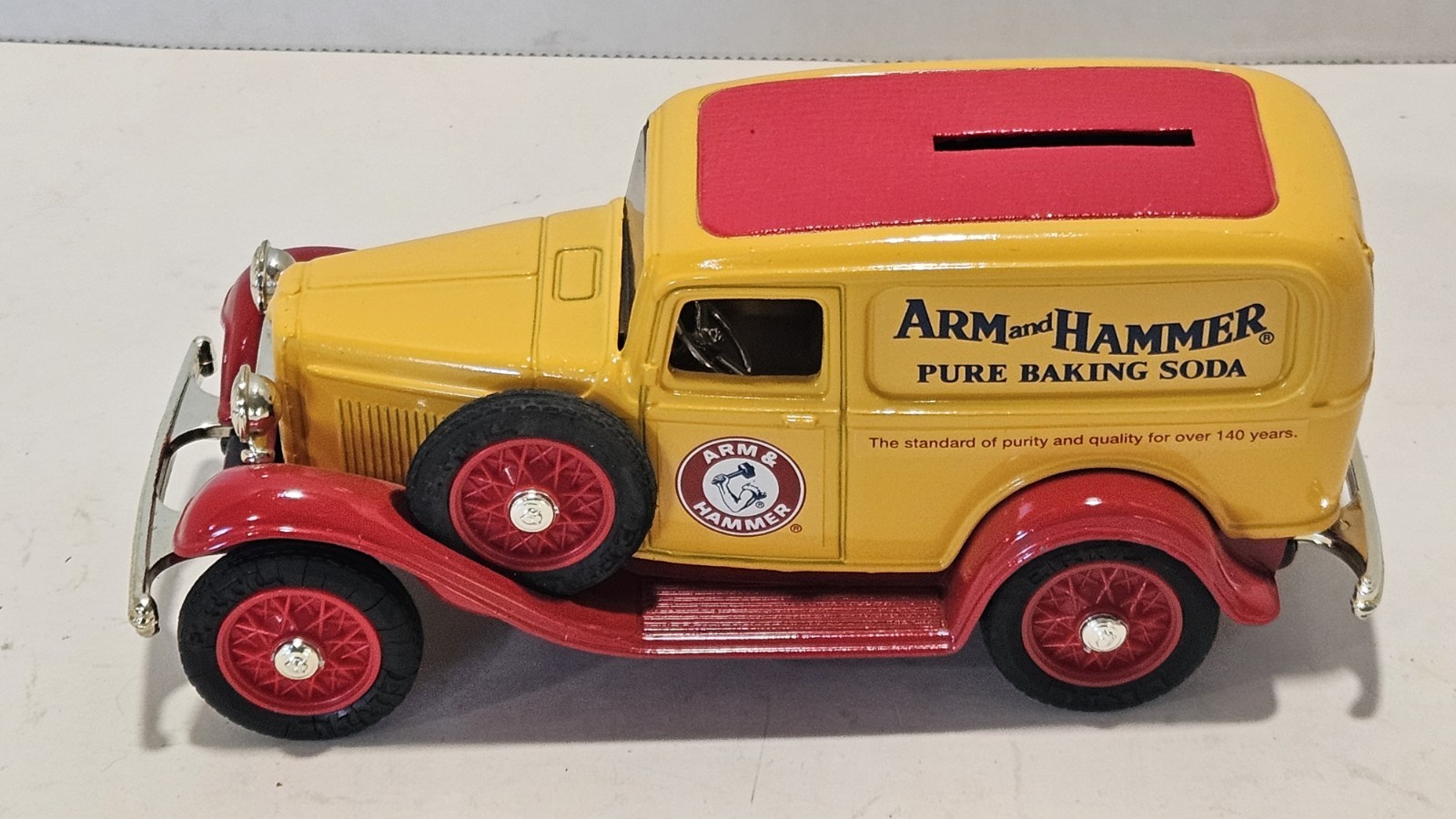 как выглядит 1989 Ertl Arm and Hammer 1932 Panel Delivery Bank NIB фото