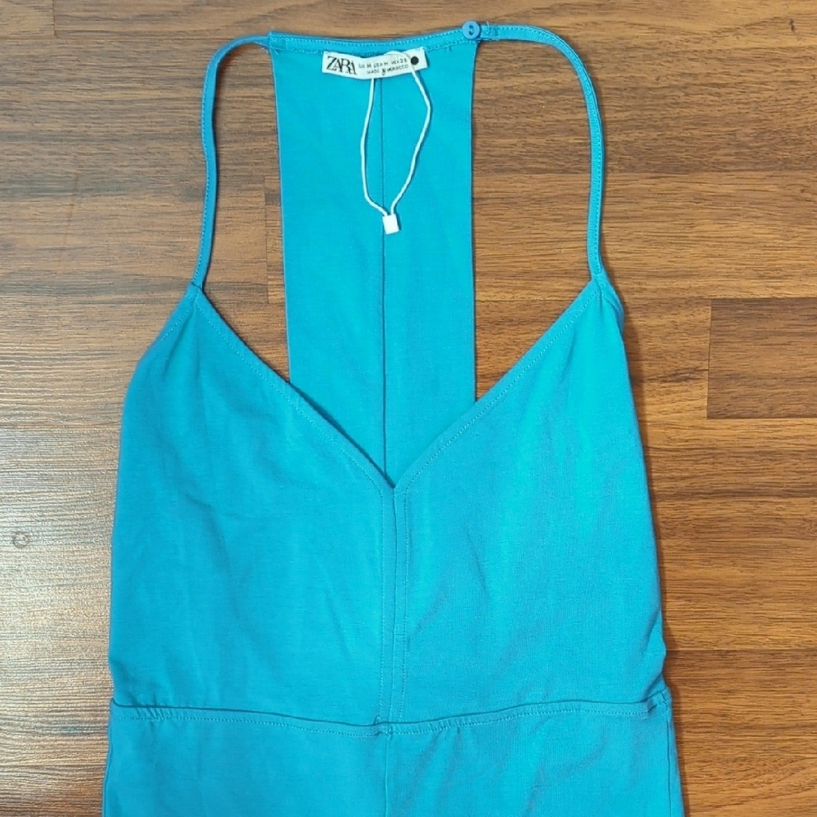 NWOT Zara Blue Spaghetti Strap One Piece Romper Size Medium
