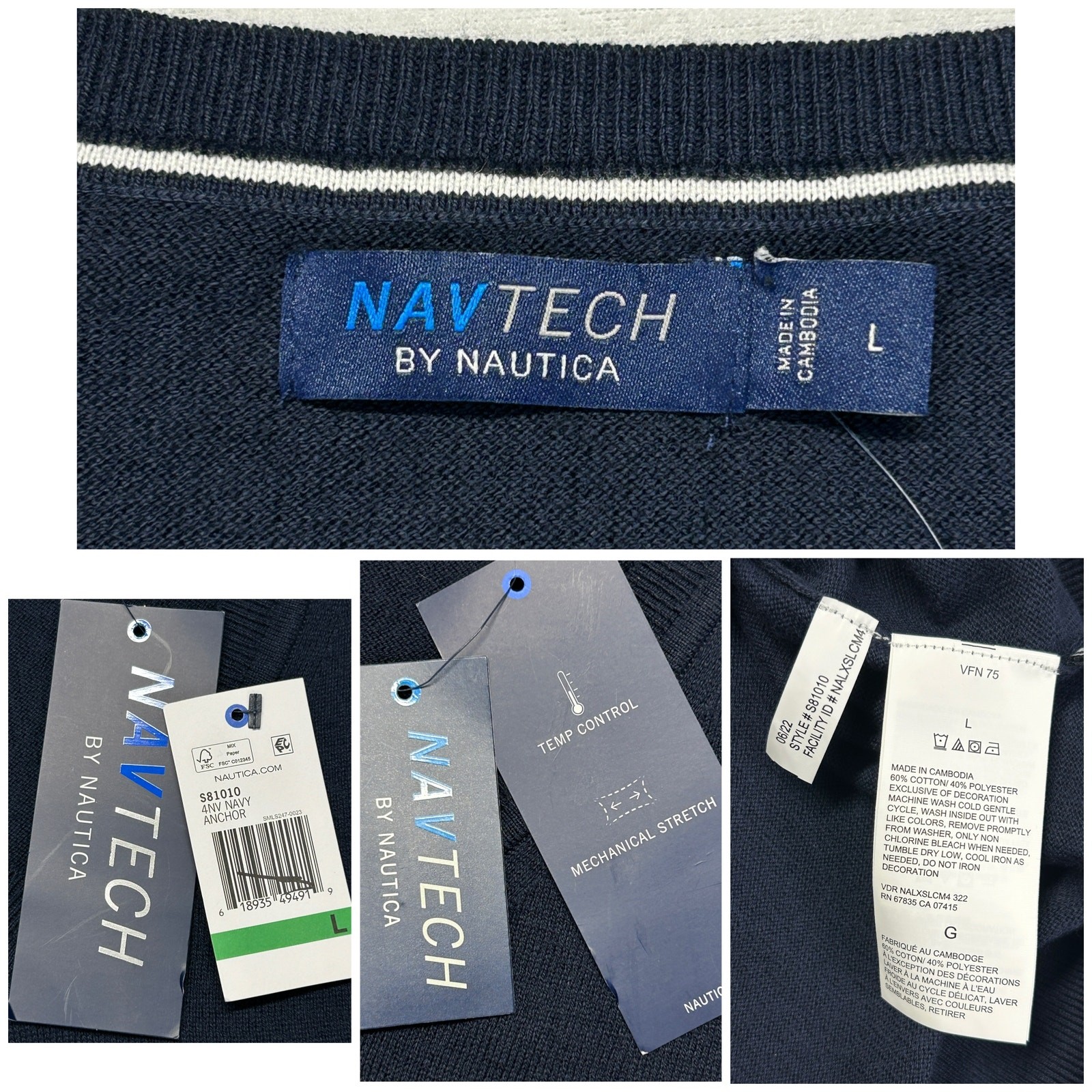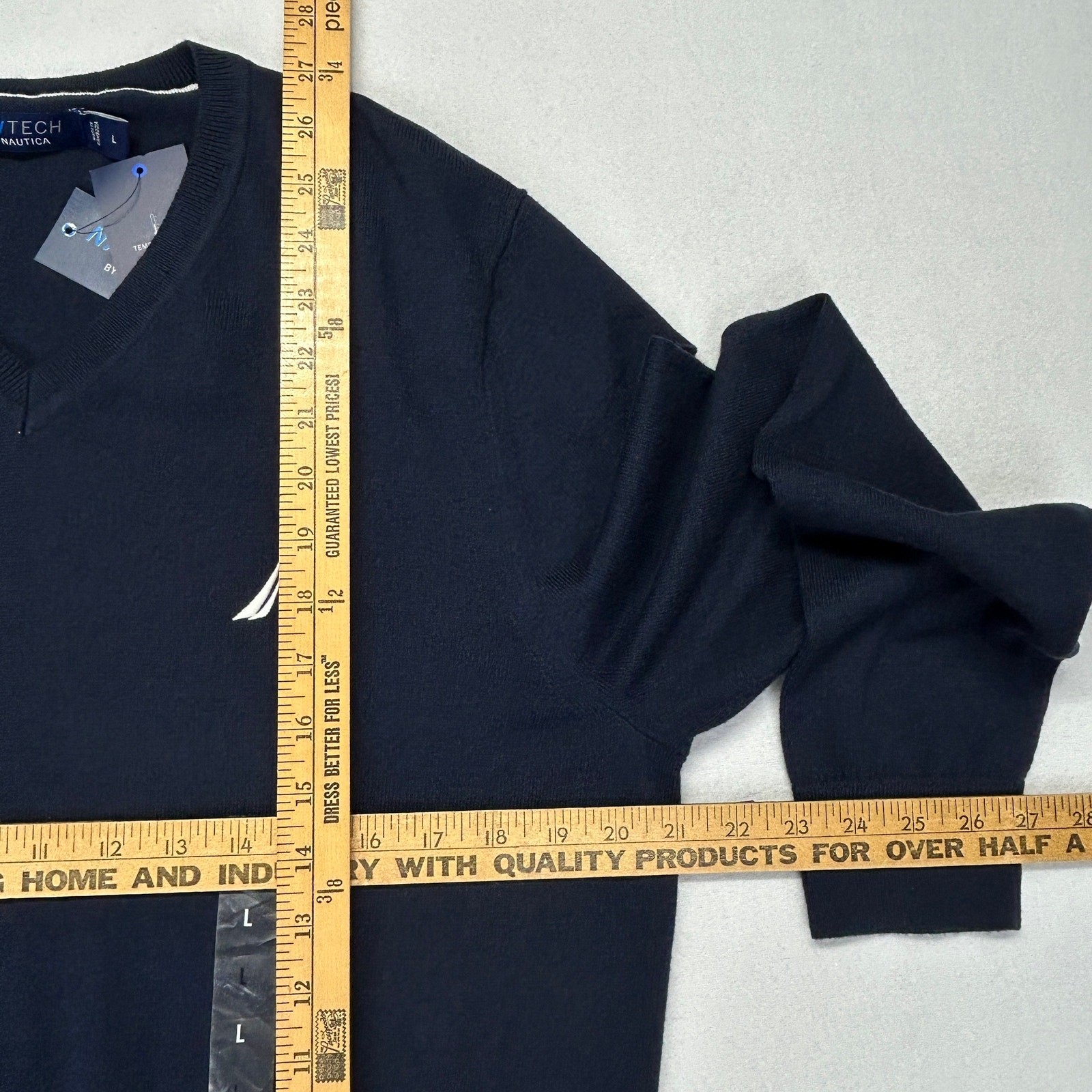 Nautica Nav Tech Sweater Mens L NEW Navy Blue Knit Pullover V-Neck L-S Logo 2022