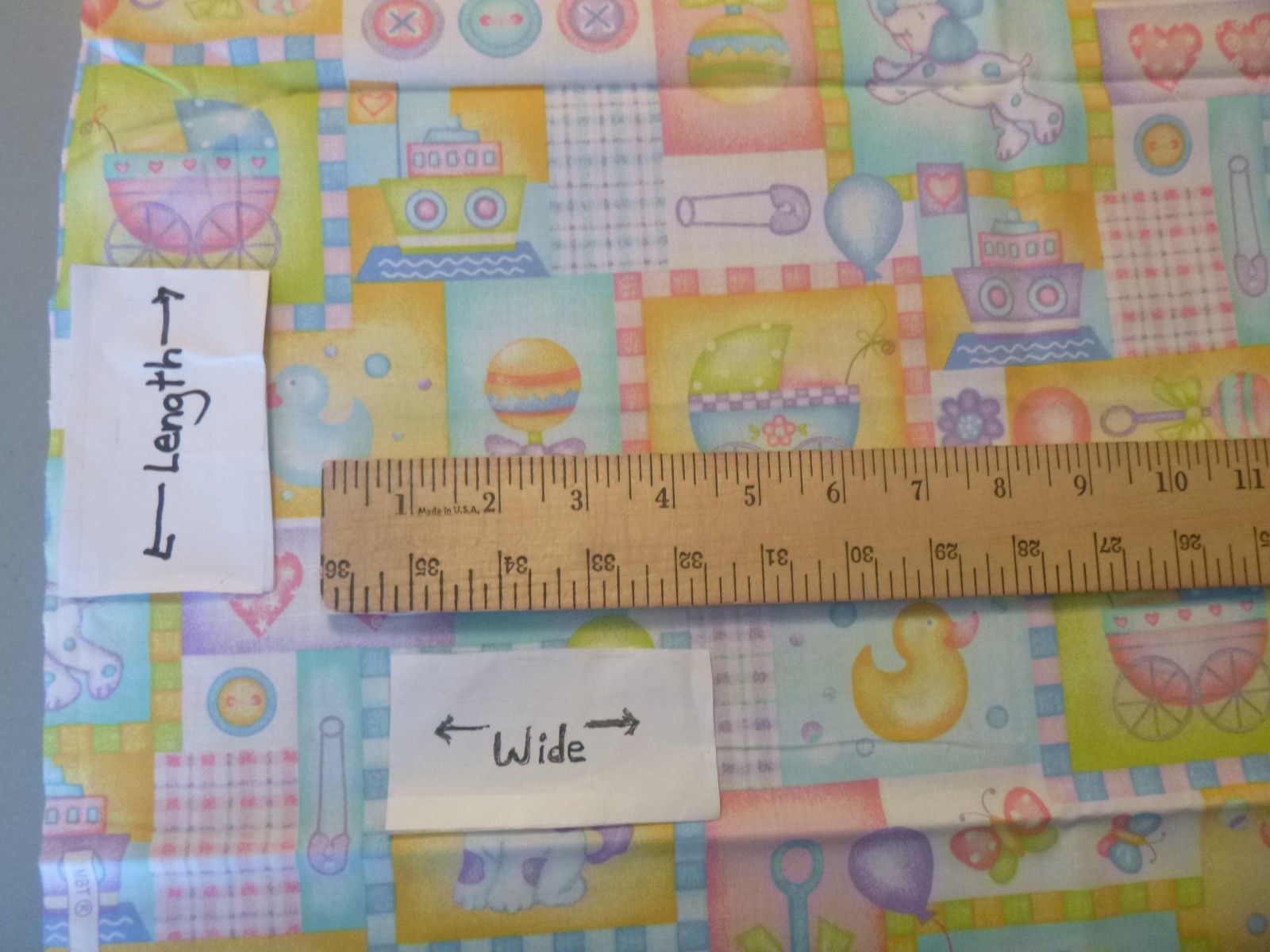 как выглядит Baby Items on MultColor Cotton Fabric 44" Wide x 67" long фото