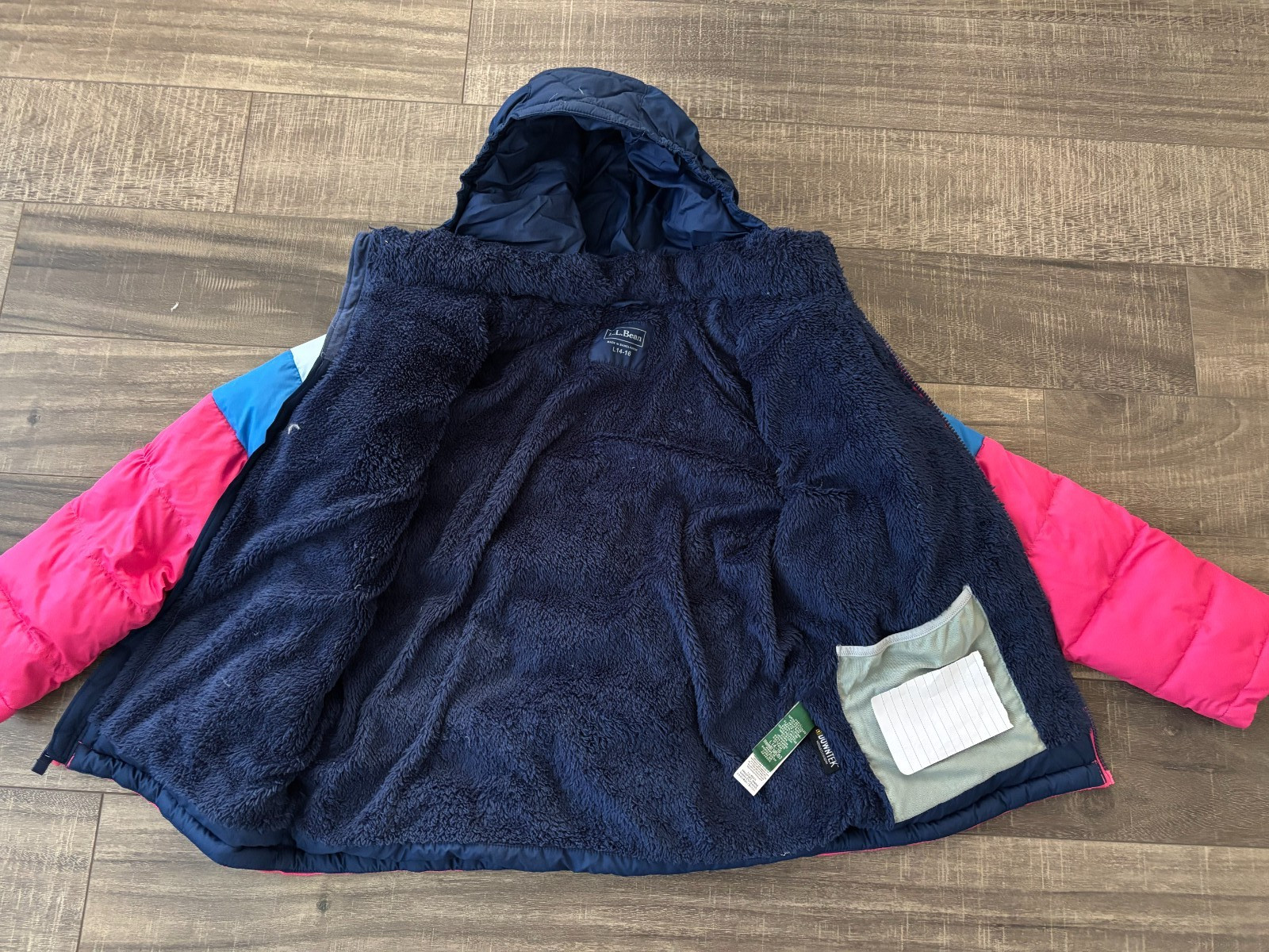 как выглядит Girls LL Bean Down Jacket, Colorblock Pink and Blue, Size 14-16 Large фото