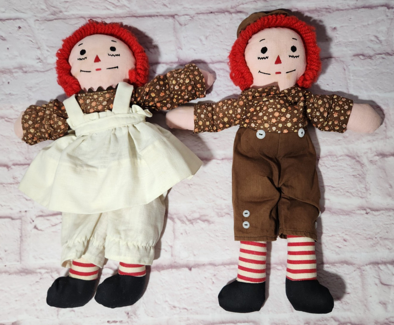 как выглядит Vintage Handmade Raggedy Ann Andy Dolls 14" Complete Outfits Striped Legs фото