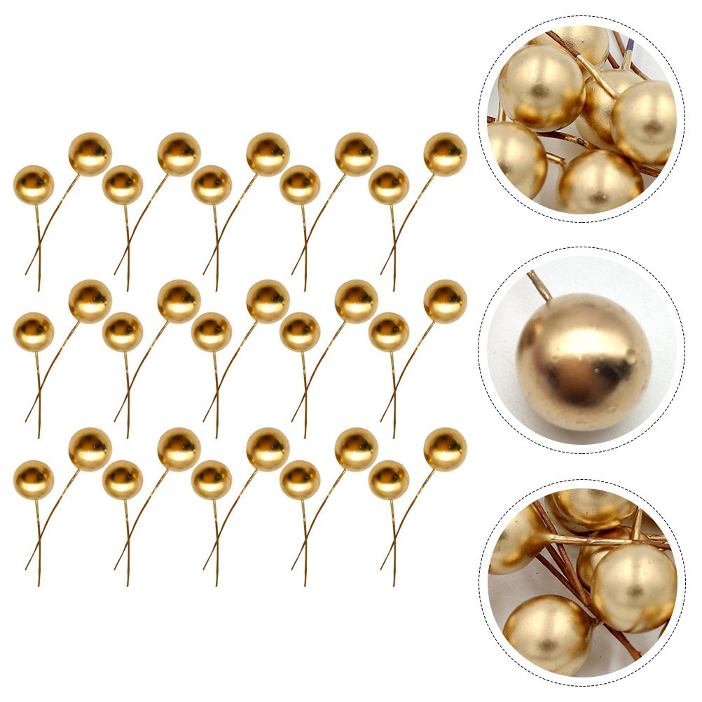 как выглядит 200pcs Christmas Golden Berry Picks DIY Artificial Holly Berries for Wreath фото