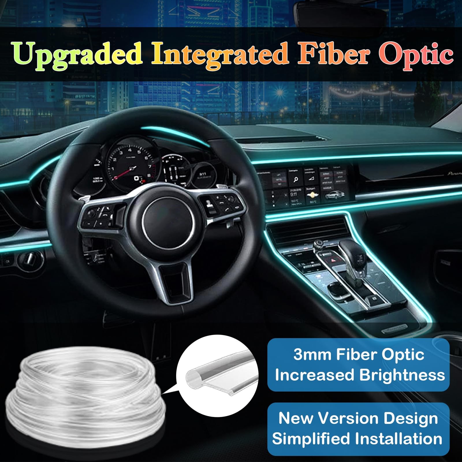 как выглядит Interior Car LED Strip Lights, RGB 6 in 1 Ambient Lighting Kit with 315 inche... фото