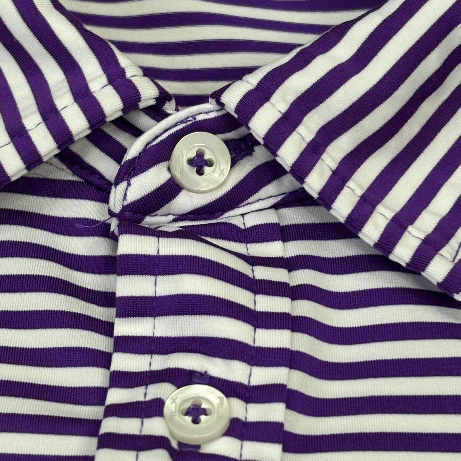 RLX Ralph Lauren Polo Shirt Mens Large Purple White Stripe Performance Golf