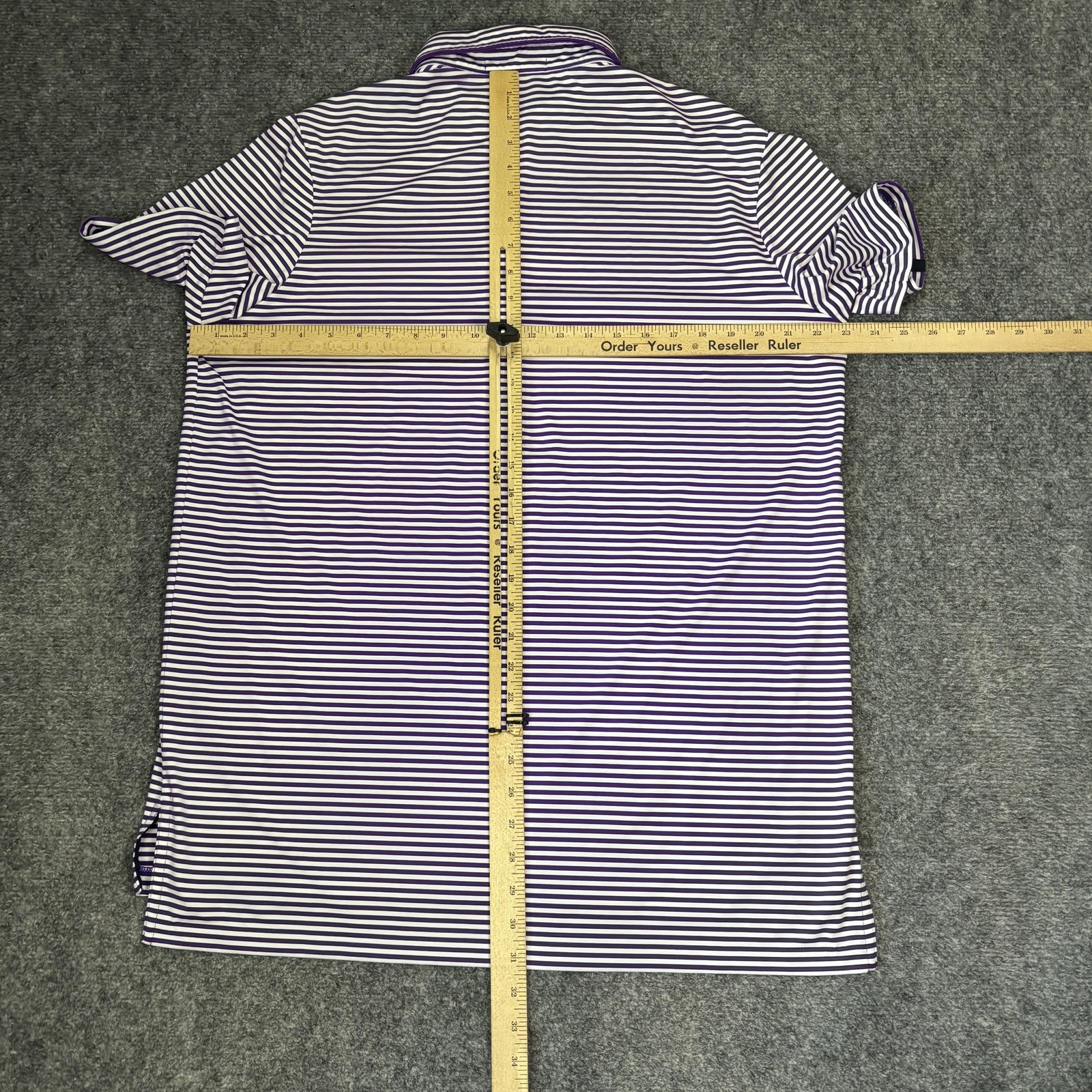 как выглядит RLX Ralph Lauren Polo Shirt Mens Large Purple White Stripe Performance Golf фото
