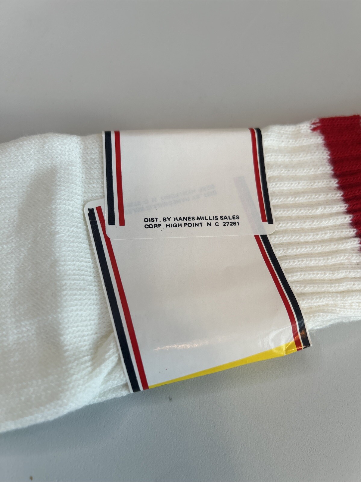 VTG Socks Hanes NOS 9-11 Tube Over Calf 80's Striped Red Acrylic Orlon USA 17