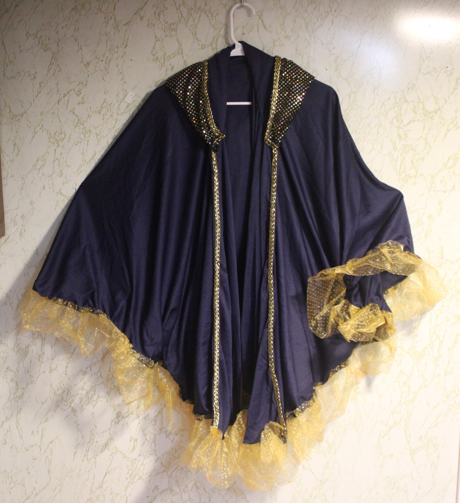 как выглядит Professional Ballet Dance Long Dark Blue Cape/Sequin Hood фото
