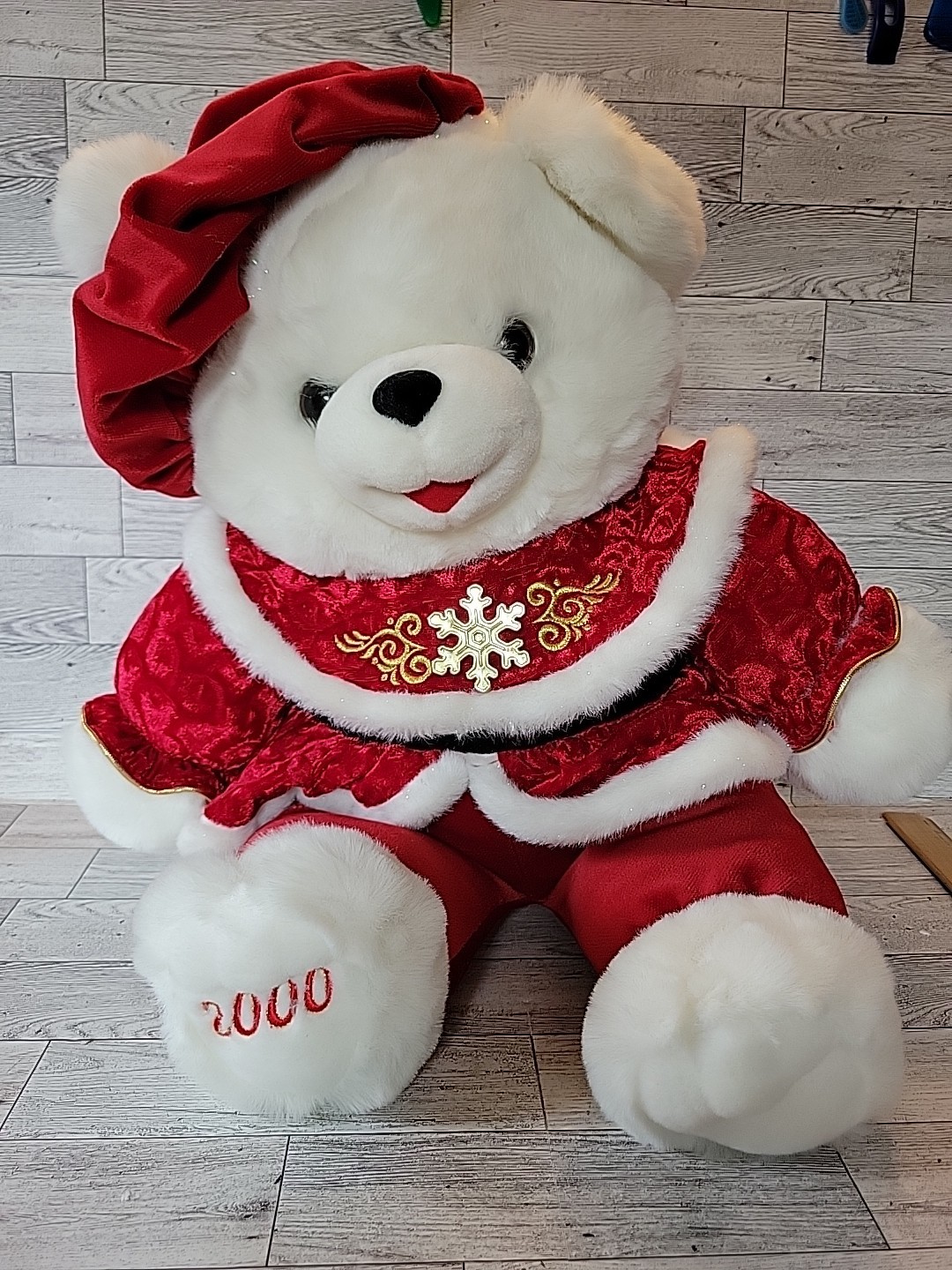 как выглядит 2000 Dan Dee Snowflake Teddy Bear White Hat Red Gold Plush 22" Girl Annual Date фото