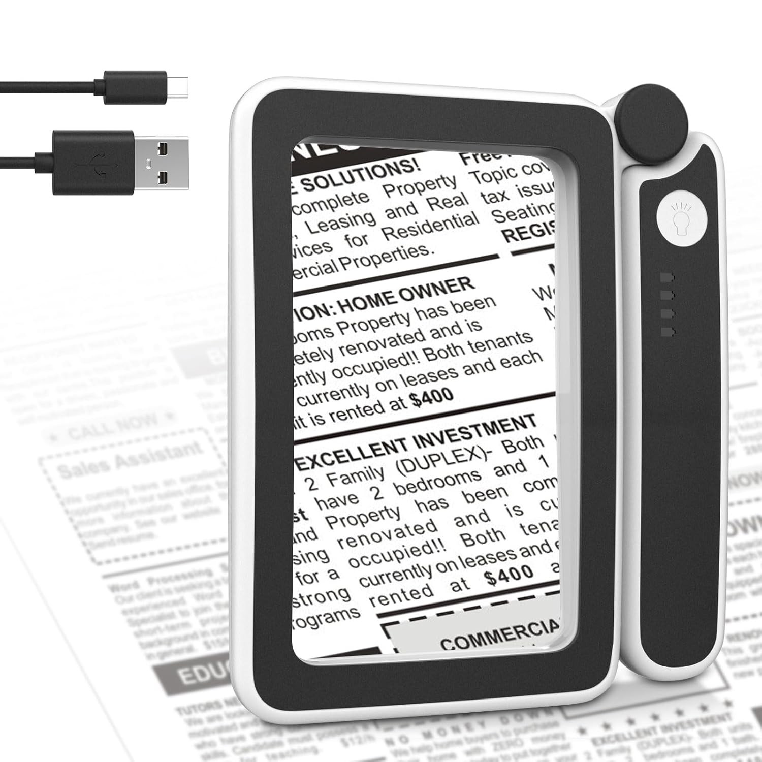 как выглядит MoKo Magnifying Glass for Reading, Rechargeable 4X Full Page Book Magnifier, Mag фото