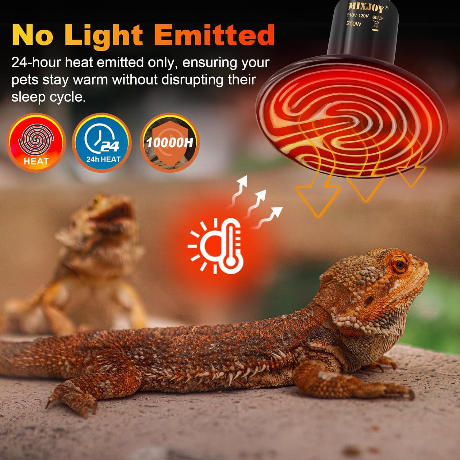 MIXJOY 250W Ceramic Heat Emitters - 2Pack Reptile Heat Lamp Bulbs, No Light Emit