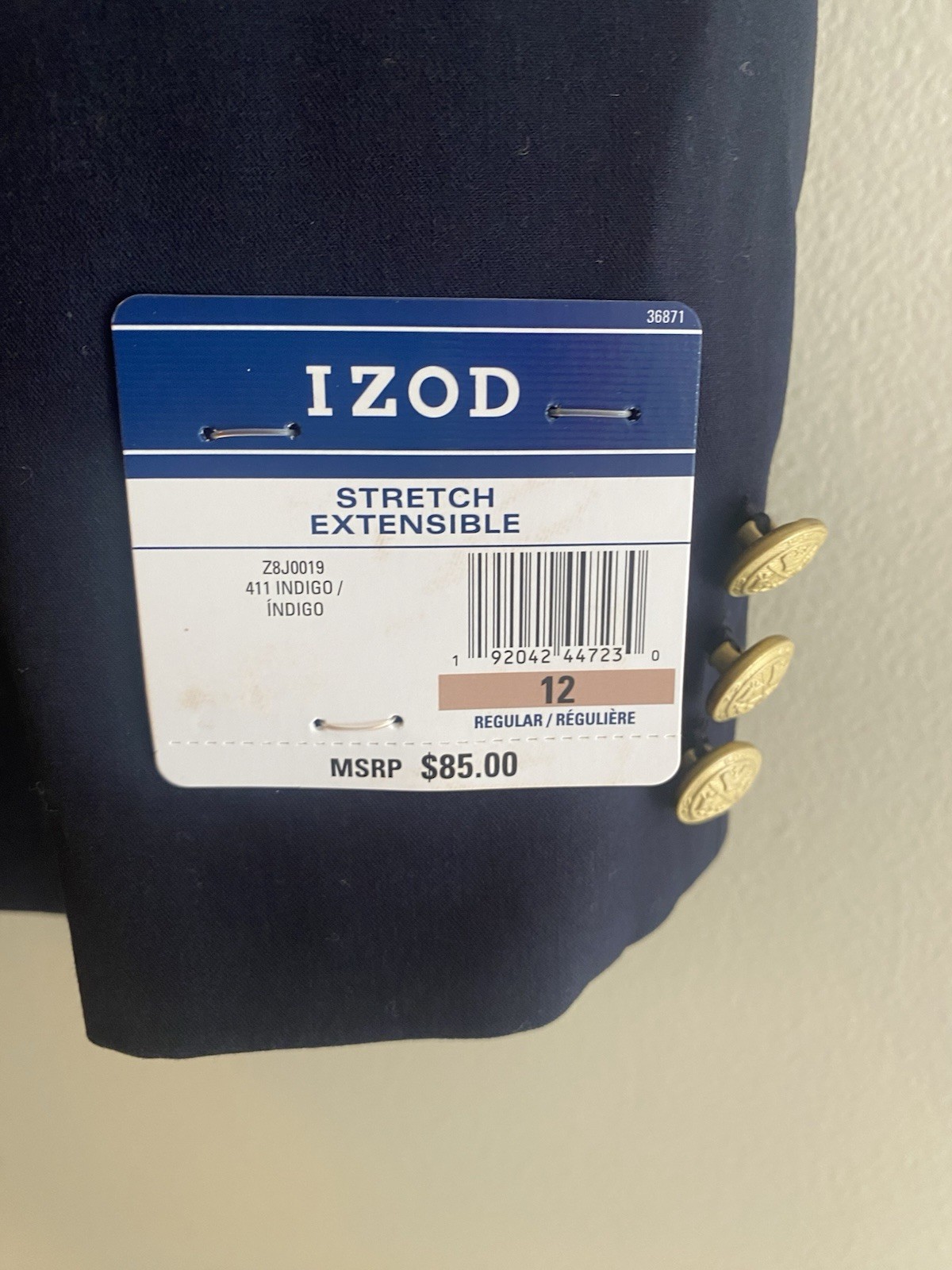 Boys 12 Reg IZOD Blue Indigo Stretch Extensible 2 Button Boys Blazer NWT