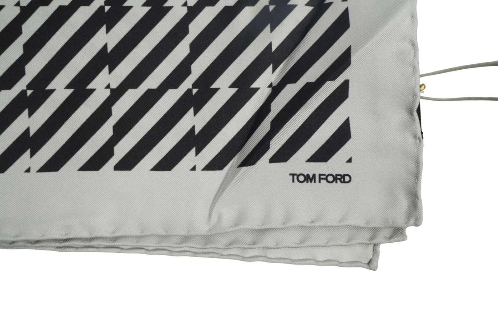 NWT TOM FORD Gray and Black Geometric Silk Pocket Square Italy 15.5