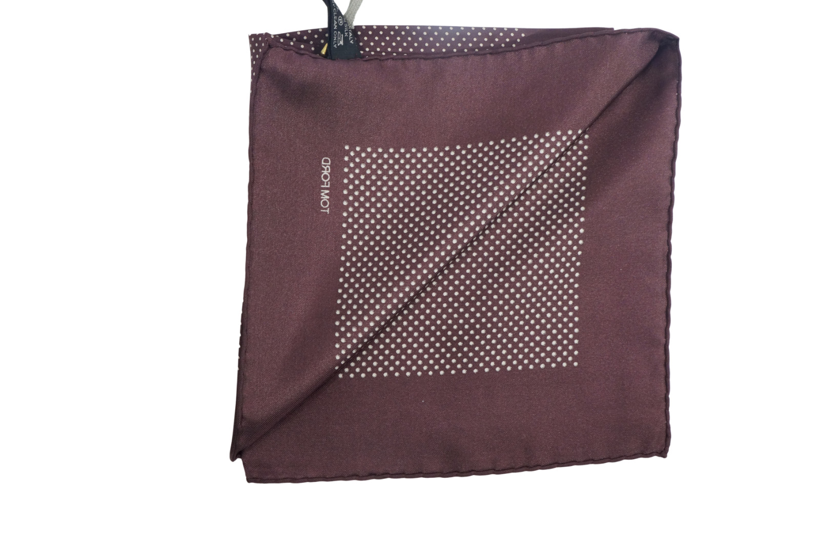 как выглядит NWT TOM FORD Brown w White Polka Dot Silk Pocket Square Italy 16" фото