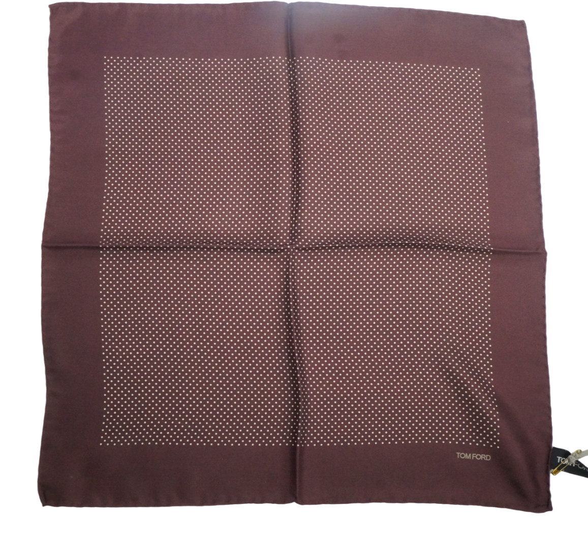 NWT TOM FORD Brown w White Polka Dot Silk Pocket Square Italy 16