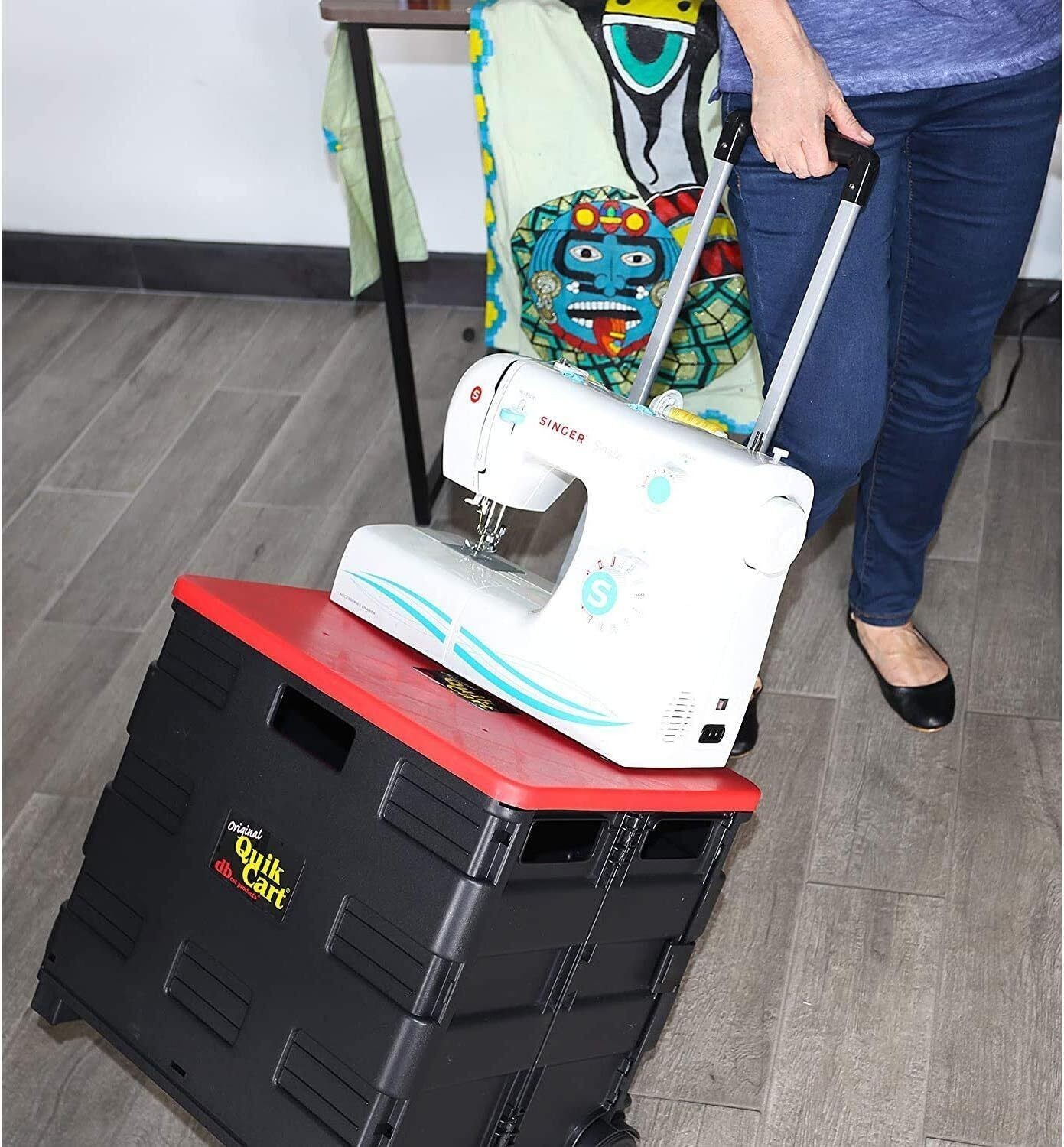 Quik Cart Collapsible Rolling Crate Tote Basket Heavy Duty Plastic Seat 80 Lbs