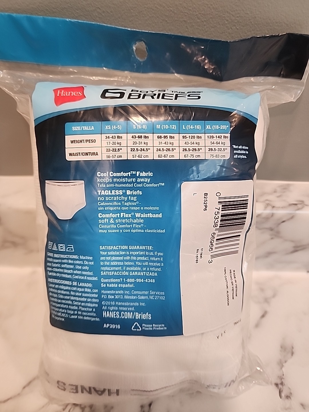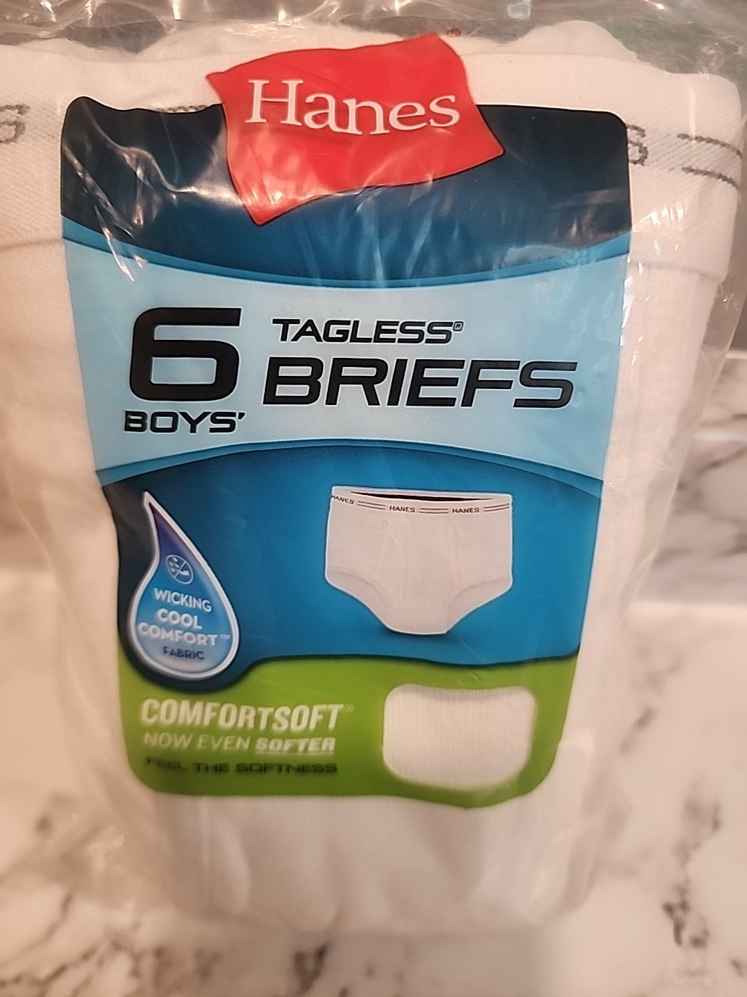 как выглядит Hanes Boys 6 Pack Tagless White Briefs - Size Large L 14-16 New In Package фото