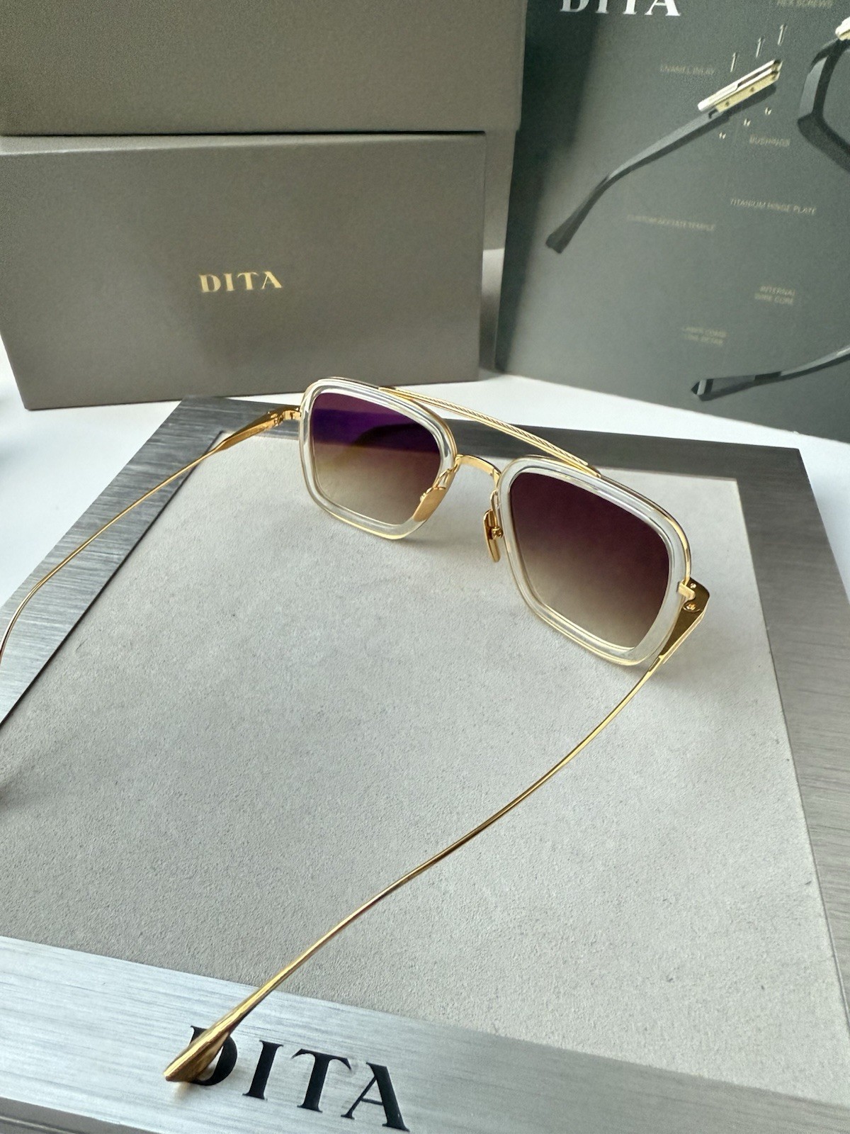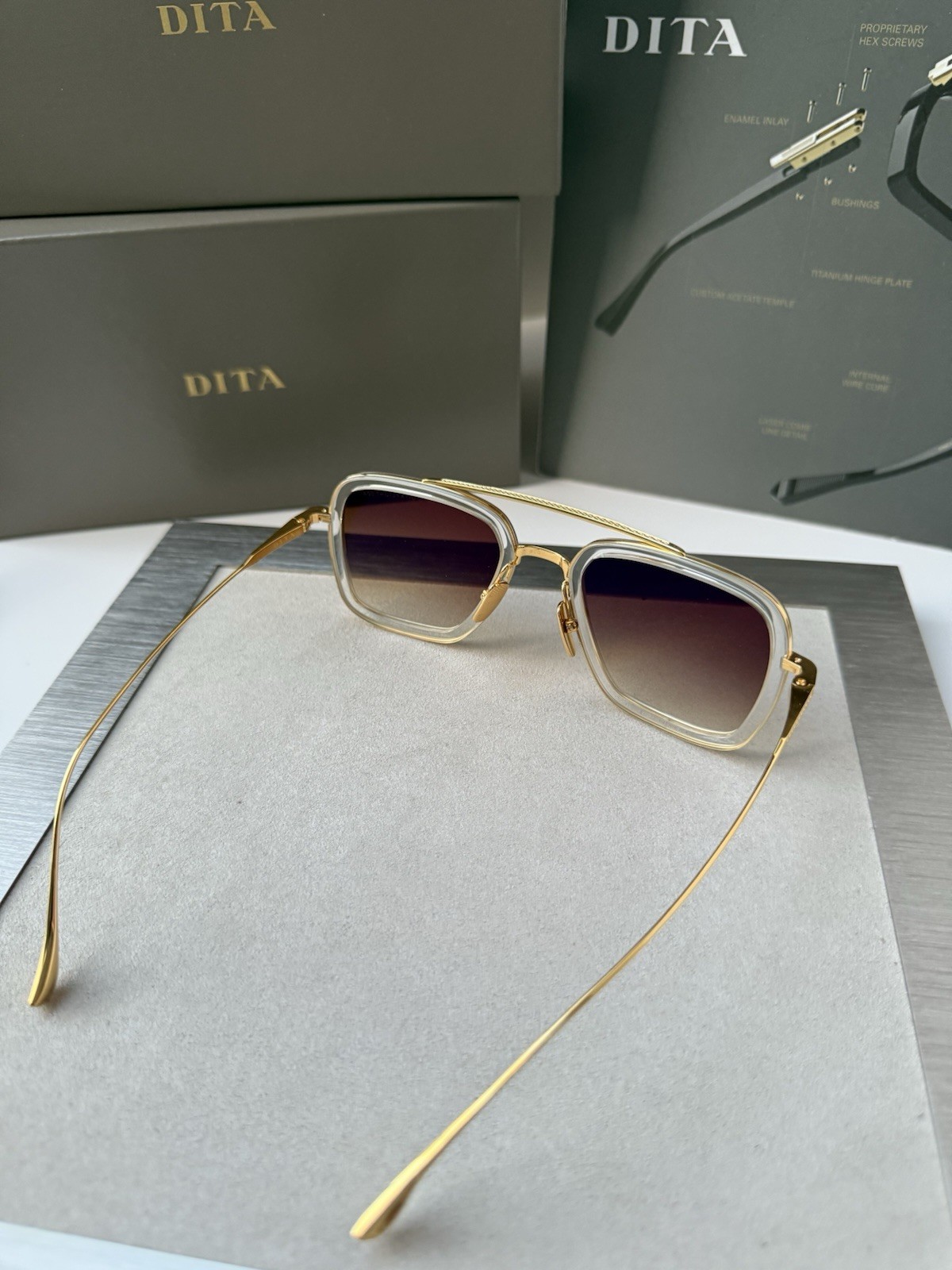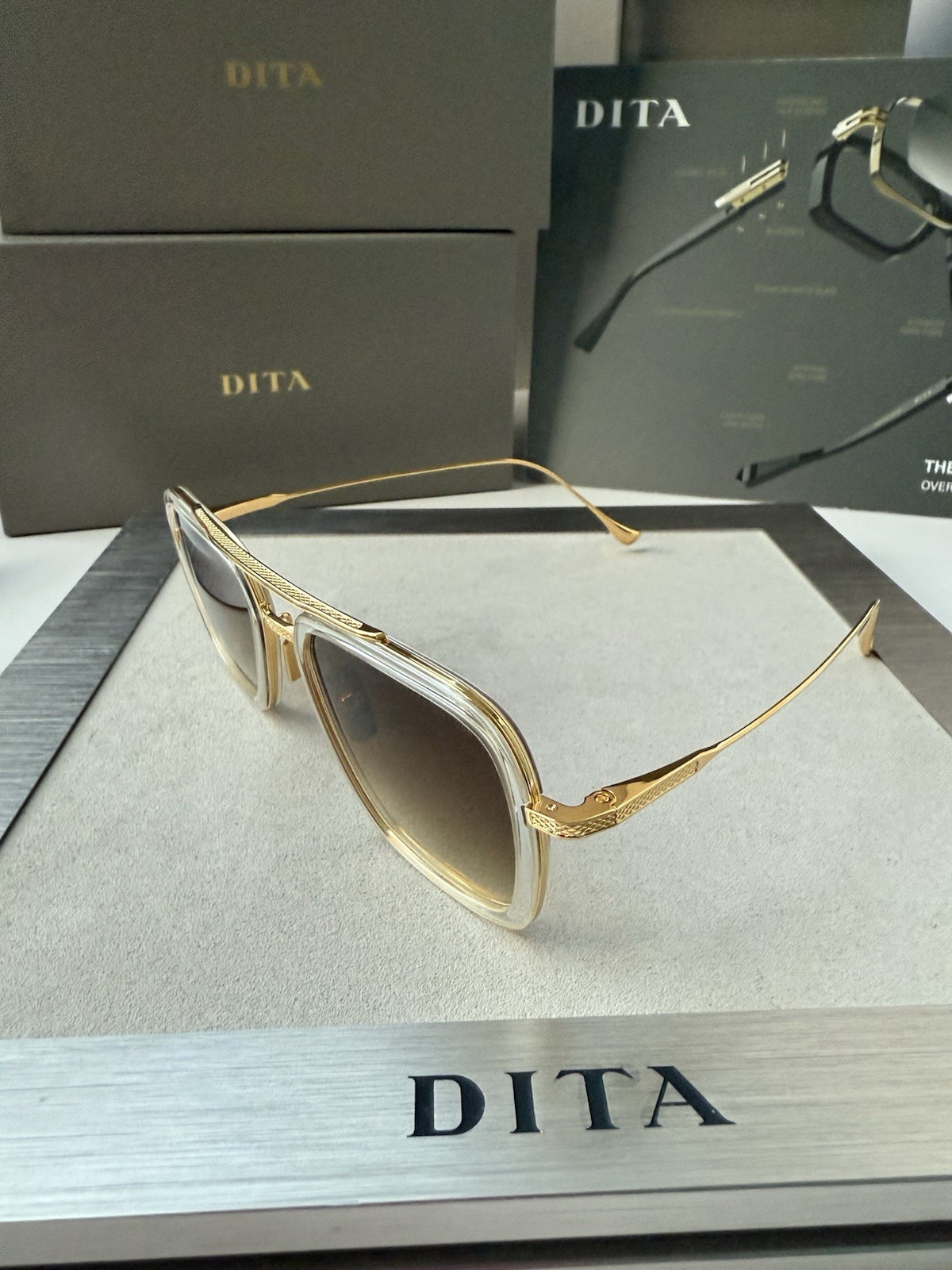 как выглядит DITA FLIGHT 006 7806 L Crystal Yellow Gold Brown Gradient Sunglasses AUTHENTIC фото