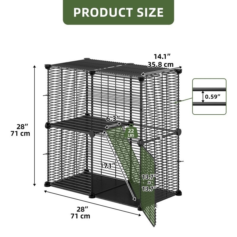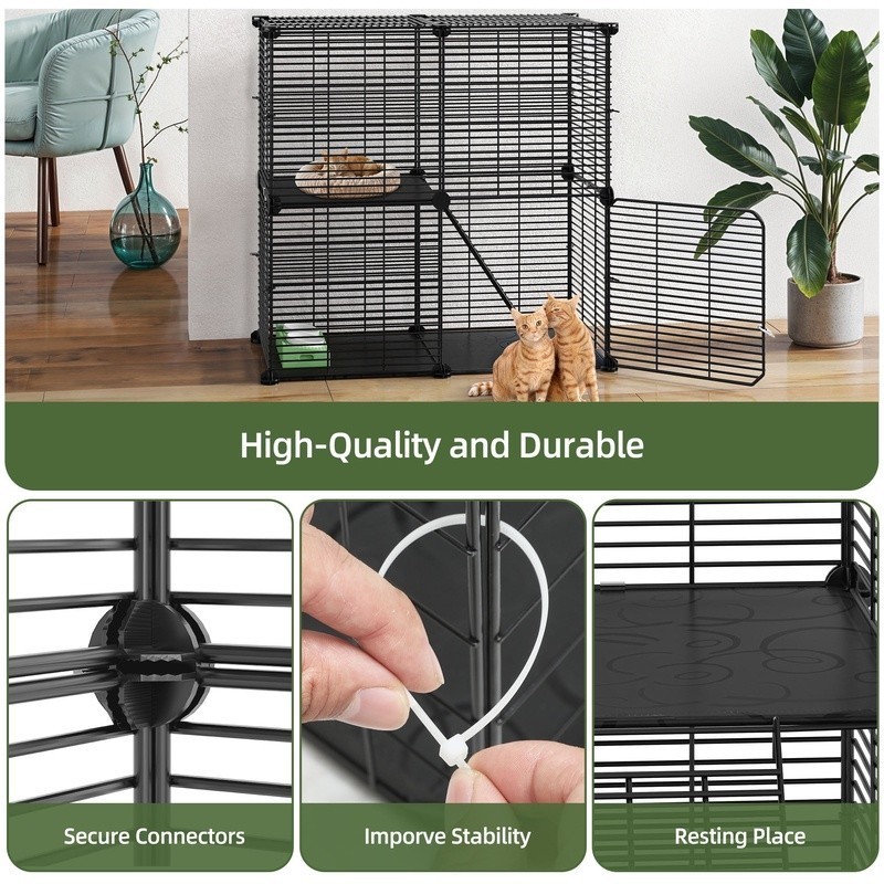 2-Tier Cat Cage DIY No-Tool Assembly Waterproof Easy Clean Indoor Outdoor Black