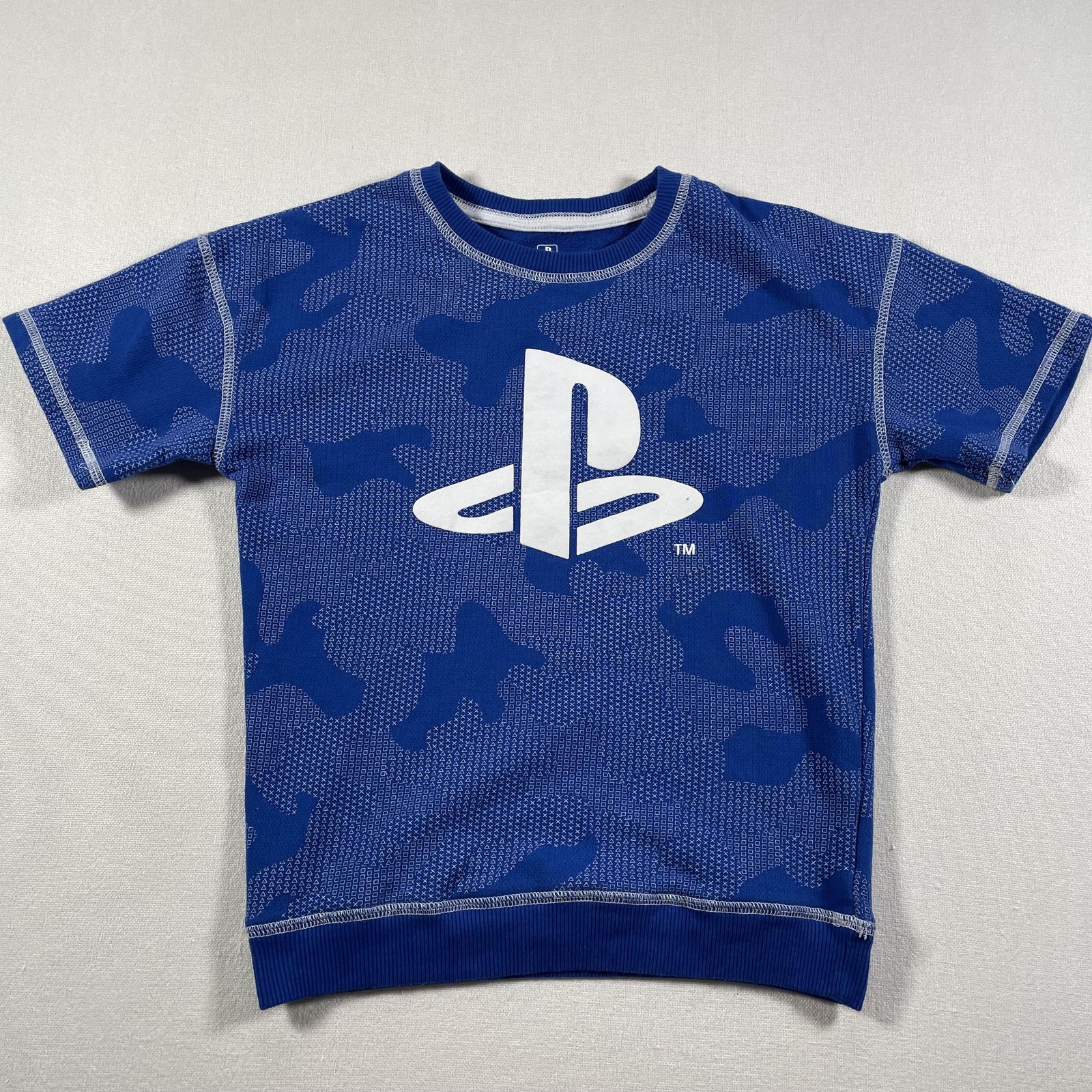 PlayStation Shirt Shorts Set Boys 8 Blue Camo Logo Sony Video Game Outfit