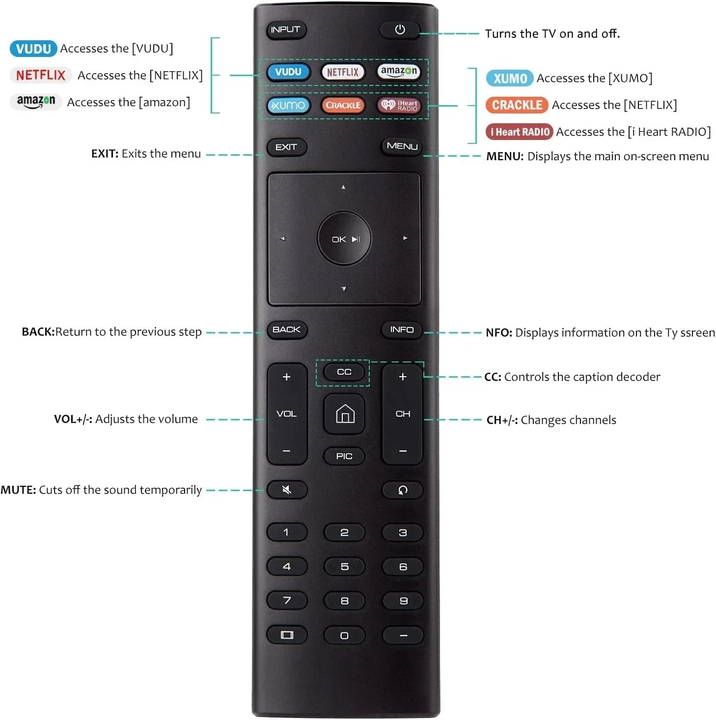 LOT New XRT136 for Vizio TV Remote Control Vudu Amazon iheart Netflix 6 Keys