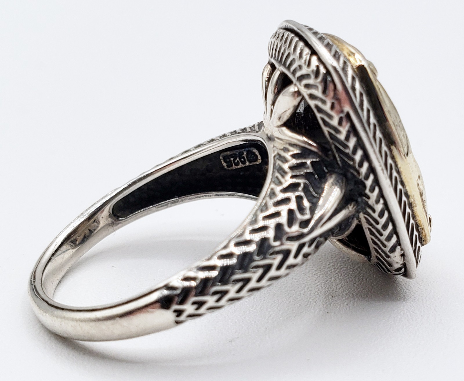 как выглядит Designer Sterling Ring, Size 9 Silver Gold Smokey Faceted Quartz фото