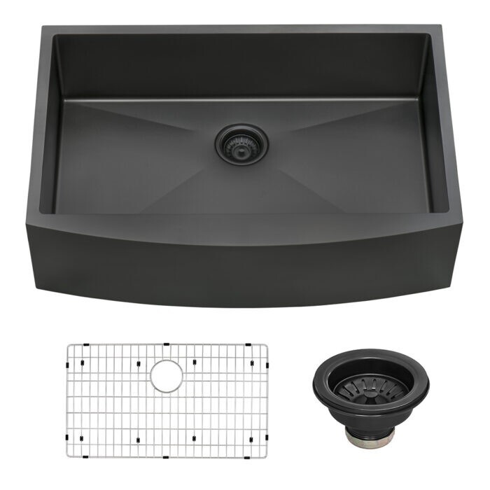 Ruvati 33 Apron-Front Farmhouse Black Matte Kitchen Sink- RVH9733BL