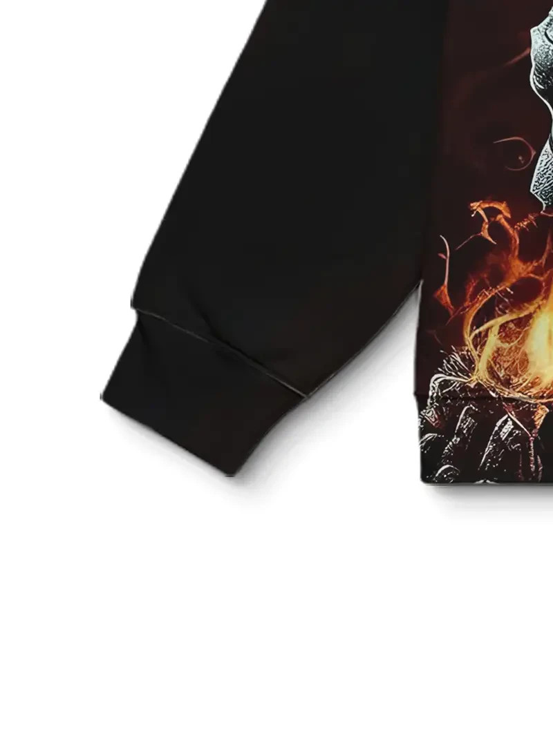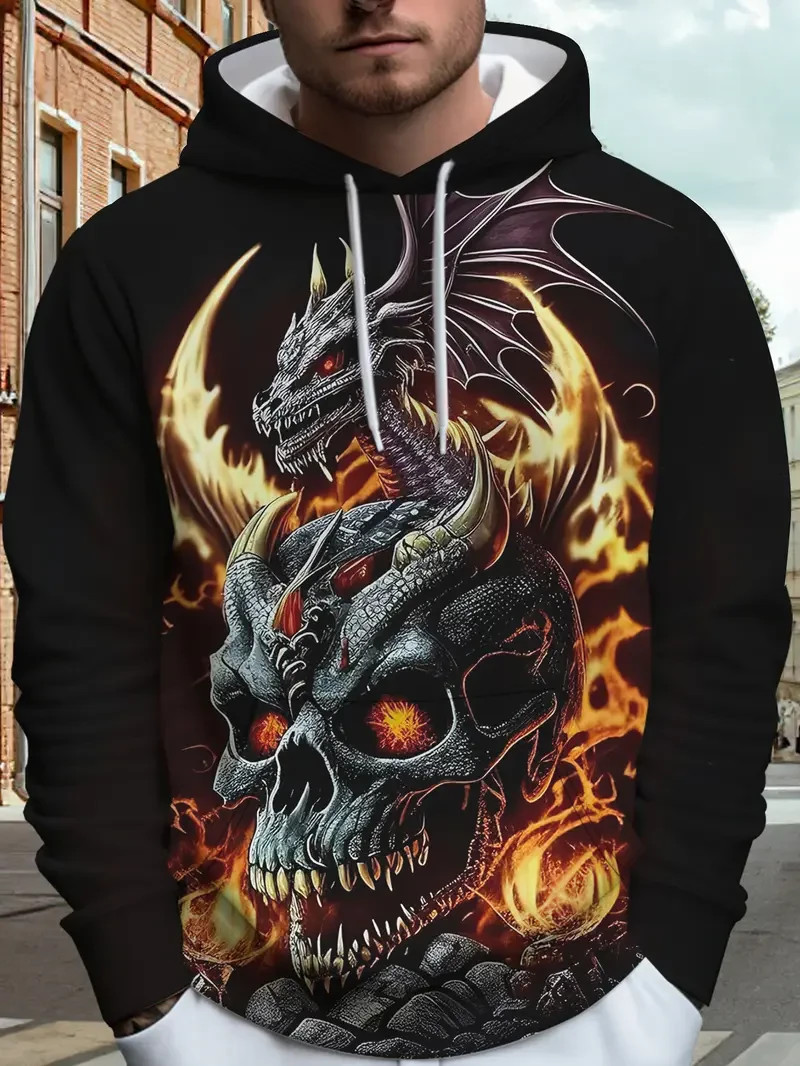 3D Dragon Skull Hoodie Fire Graphic Pullover Sweatshirt Unisex