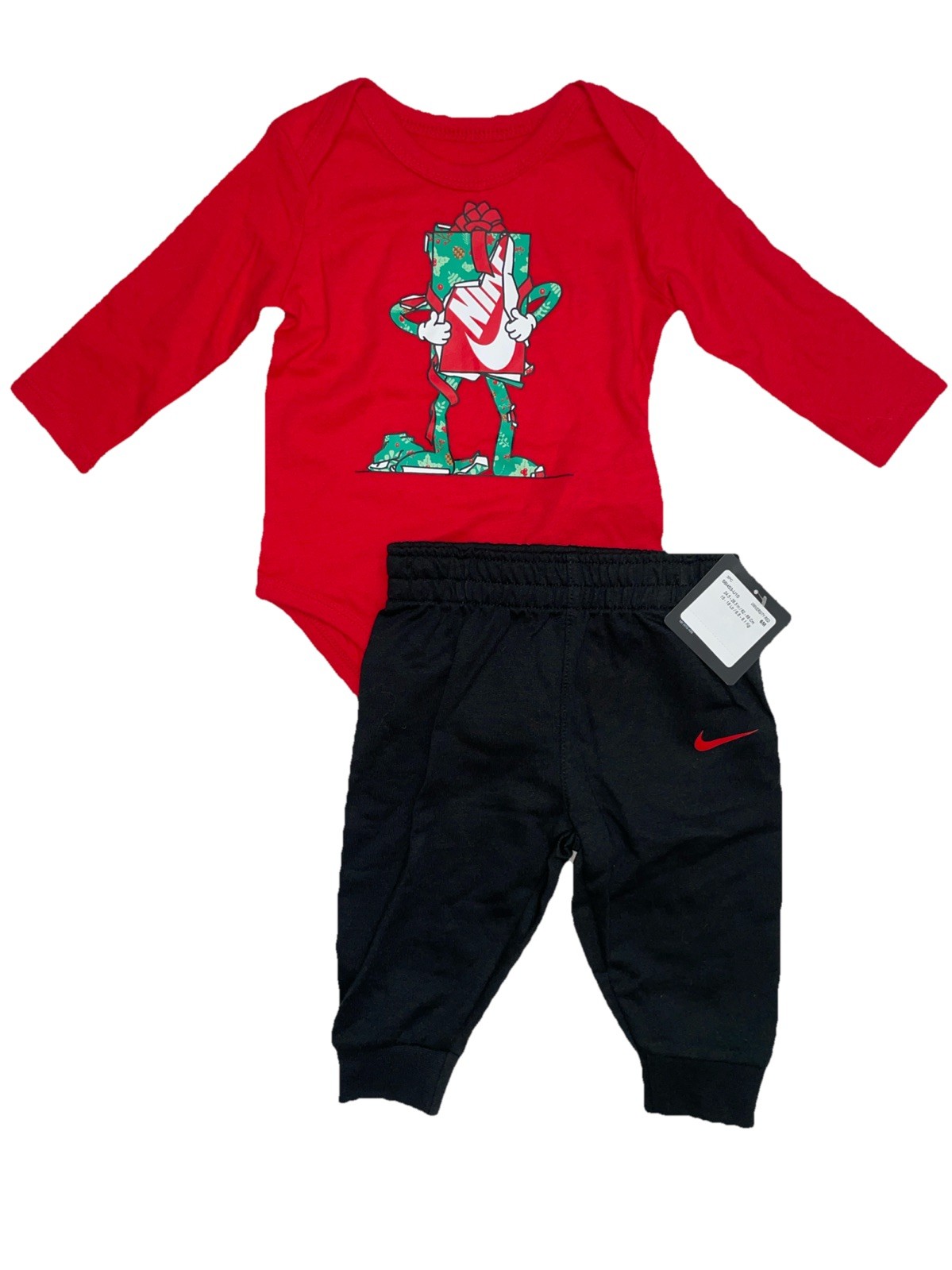 Nike Baby Boy Jogger Set, 2 Bodysuits Black Joggers, XMAS EDITION; Newborn-9M